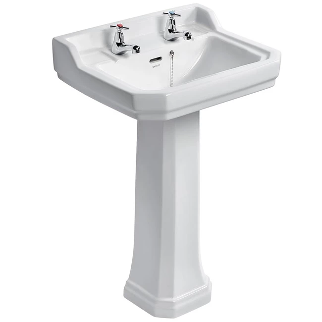 The Ideal Standard Waverley Basin with Full Pedestal 560mm W – 2 Tap Hole a model from the Waverly range of Basins manufactured by Ideal Standard. Take your bathroom experience back to the Edwardian era with an authentic period style of Waverley bathroom range, a classic traditional design with all the quality and reliability of modern manufacturing makes Waverley range the ideal choice. As you would expect from a leading brand such as Ideal Standard, this item is manufactured to the highest standards and Beautifully designed and is sure to add style and substance to your bathroom.