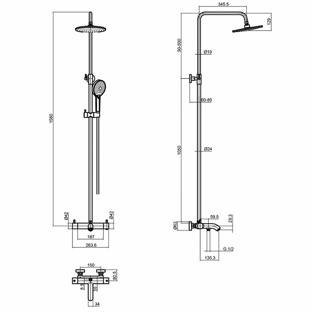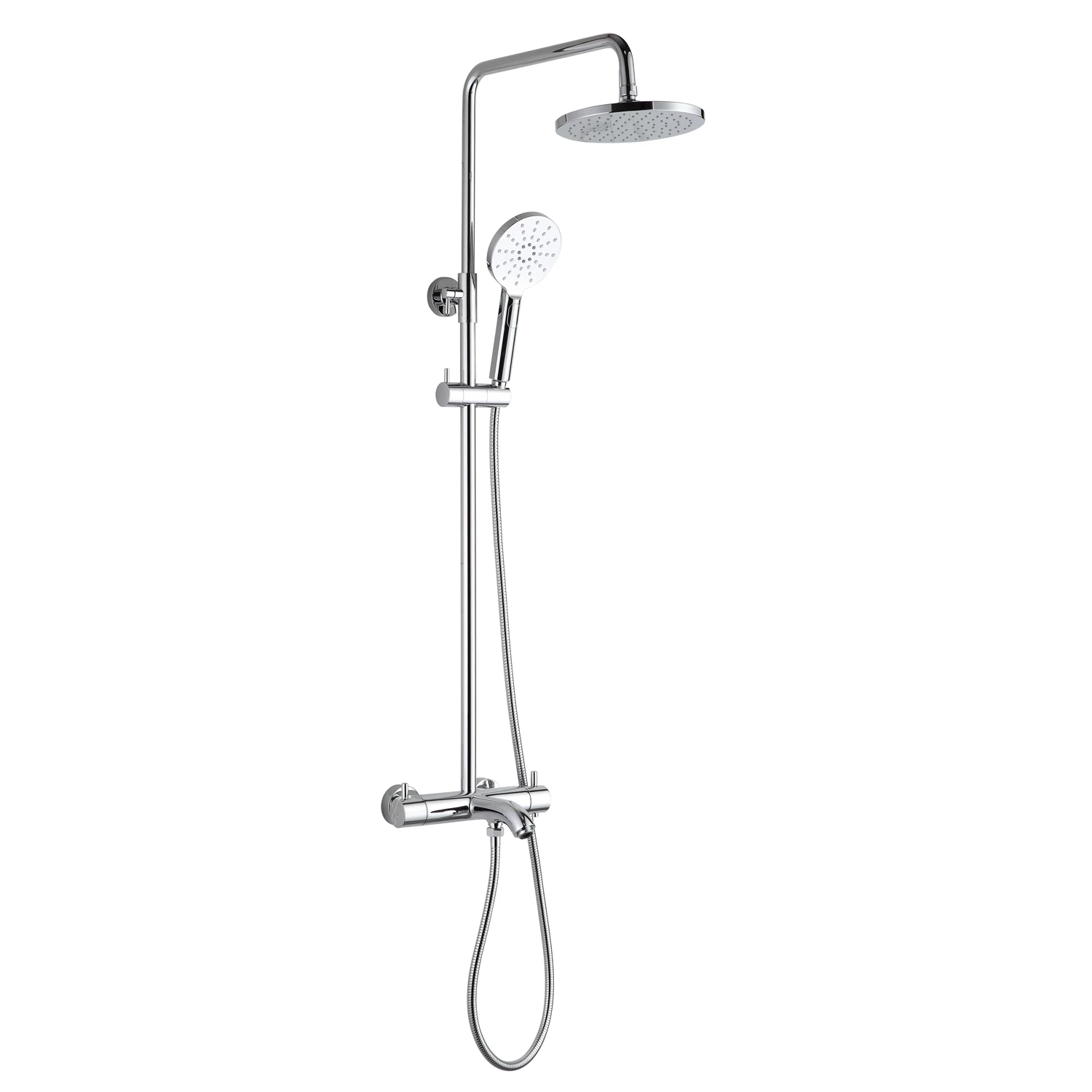 - Comes complete with Thermostatic shower pole with overhead shower, hand shower and bath spout