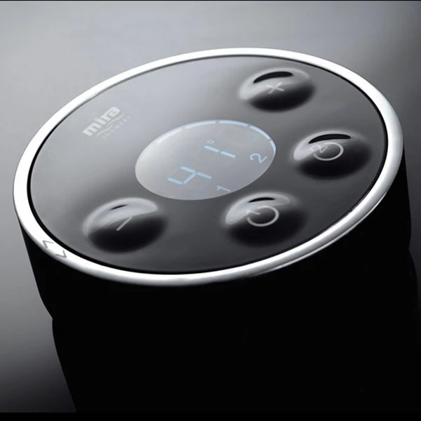 The Mira Platinum Concealed Thermostatic Digital Shower Mixer with Dual Rear Fed High Pressure – Black/Chrome is a model from Platinum range of showers manufactured by mira. The ultimate in luxury showering technology with the added benefit of being able to divert between the overhead and separate hand shower or have both on at once. This Shower Mixer from a well known brand – mira comes with an extensive 5 year guarantee.