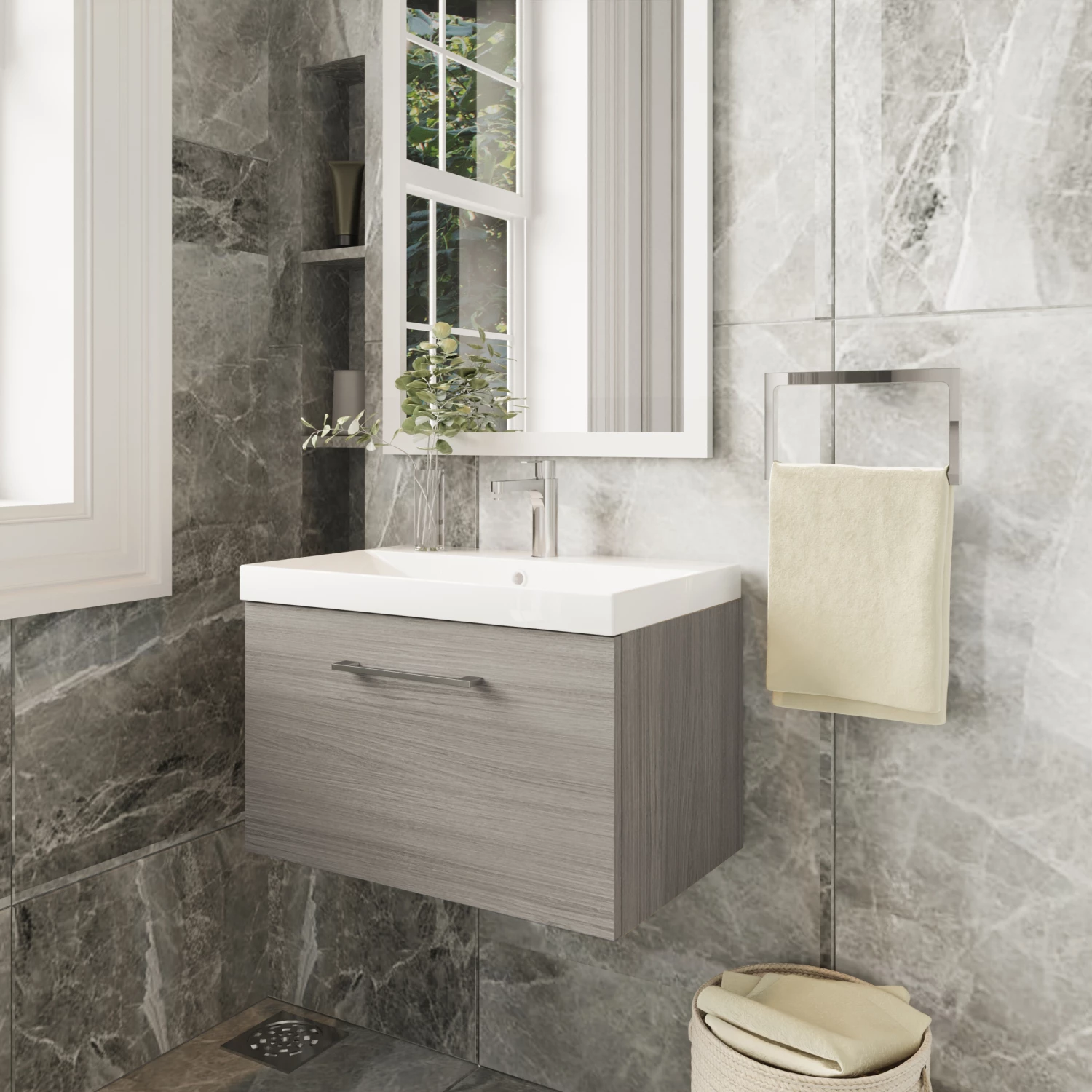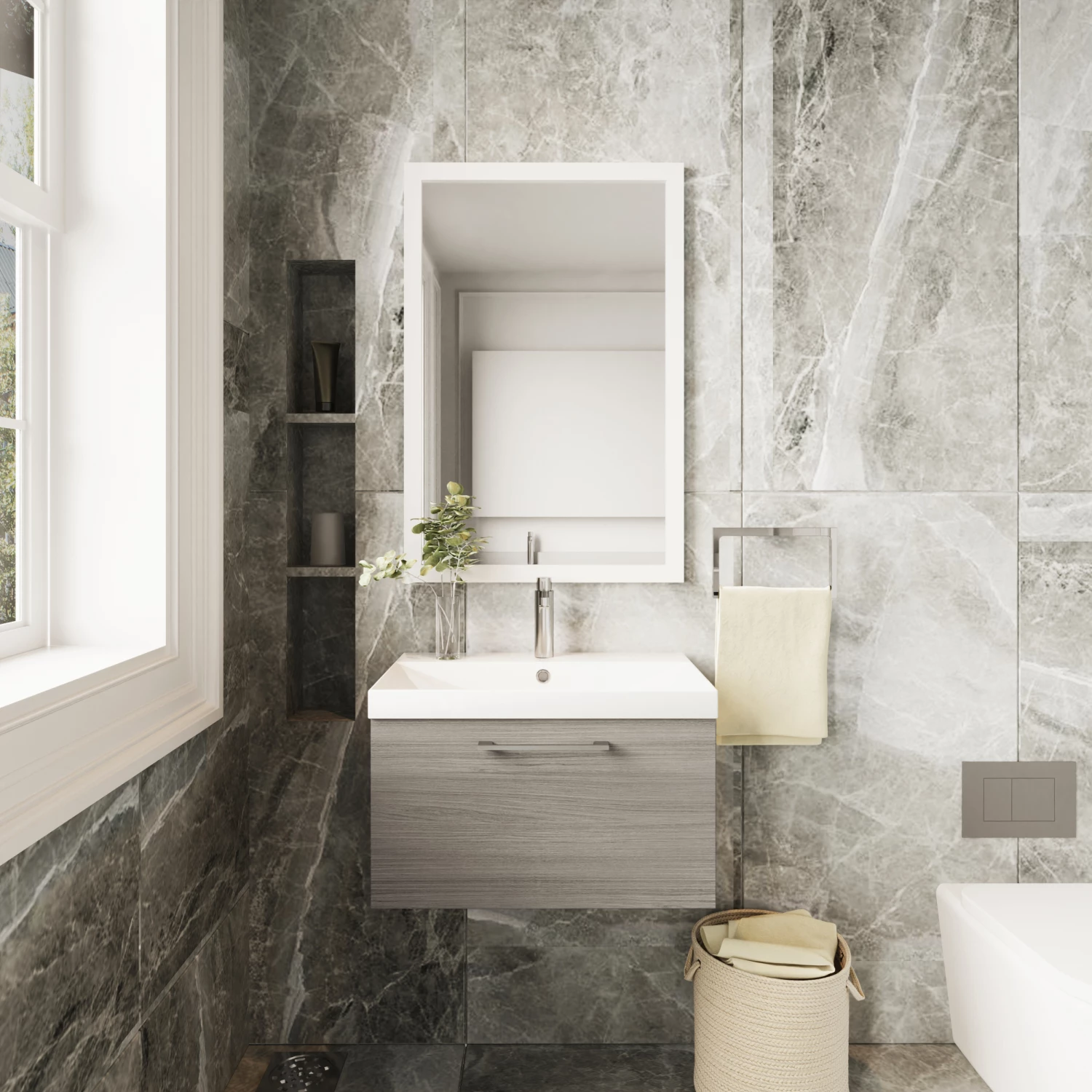 - This unique grey vicenza oak finish compliments any modern bathroom to create a designer look