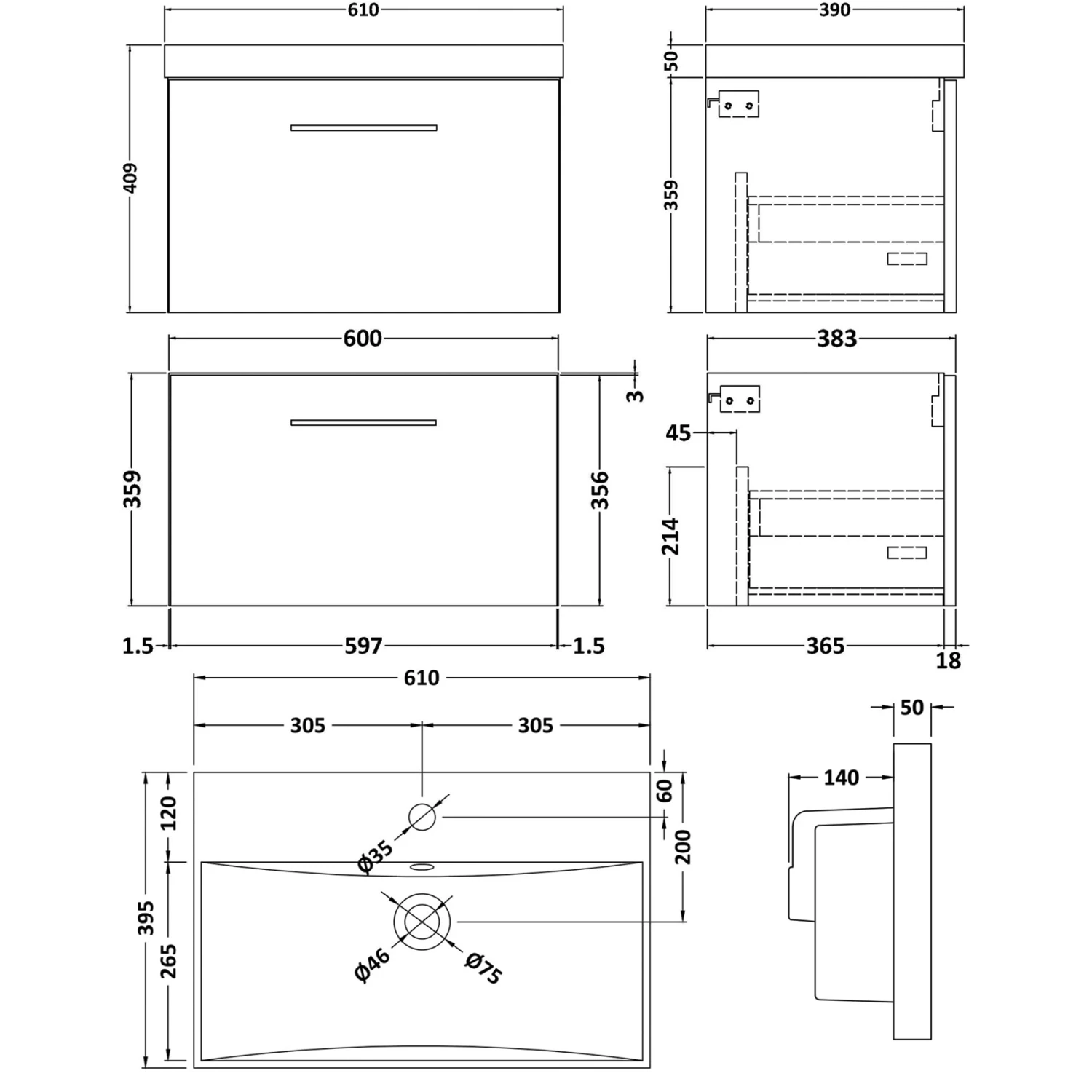 - This wall hung unit creates more space in your bathroom giving the illusion of a bigger bathroom