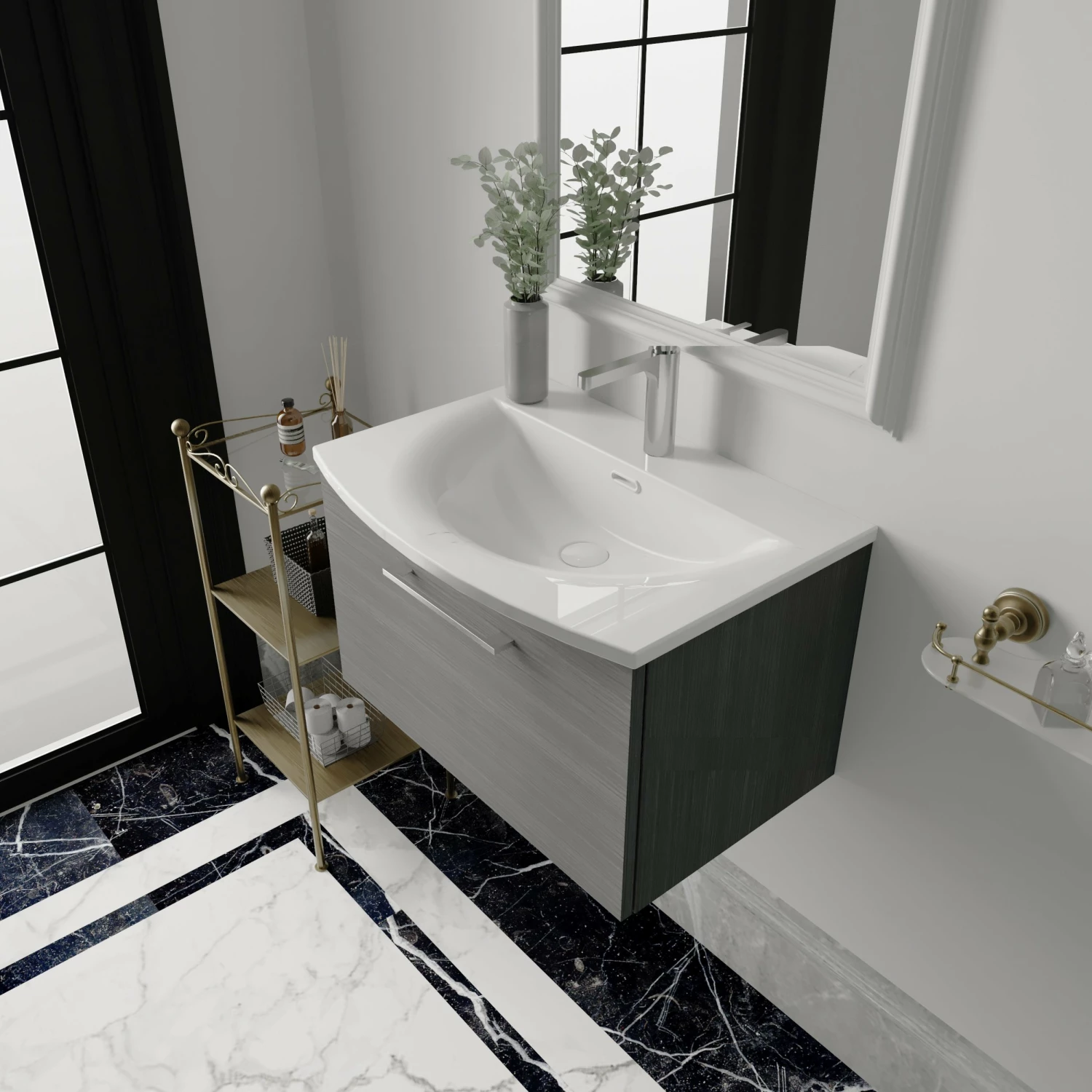 - Curved vitreous china basin pre-drilled with 1 tap hole