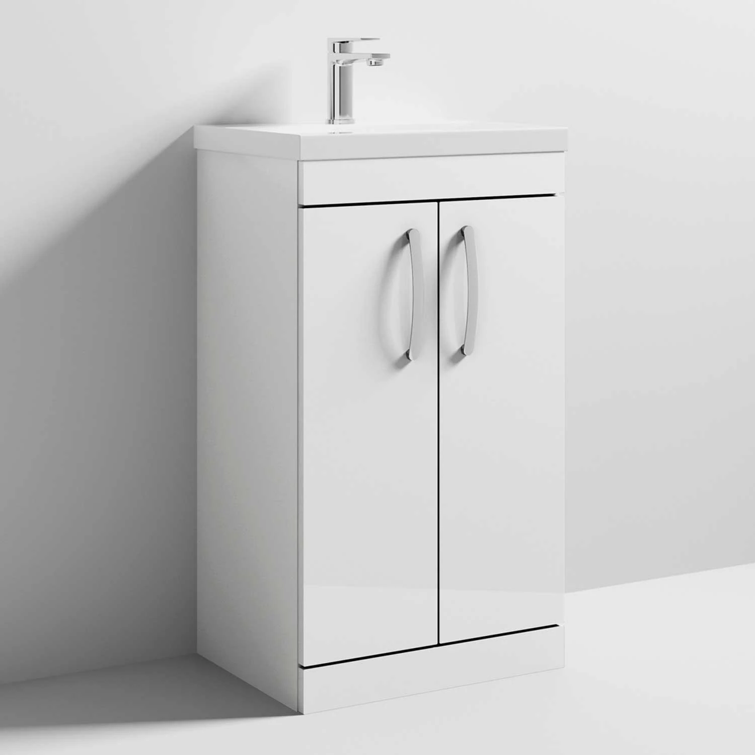 - This sleek gloss white finish compliments any modern bathroom to create a designer look
