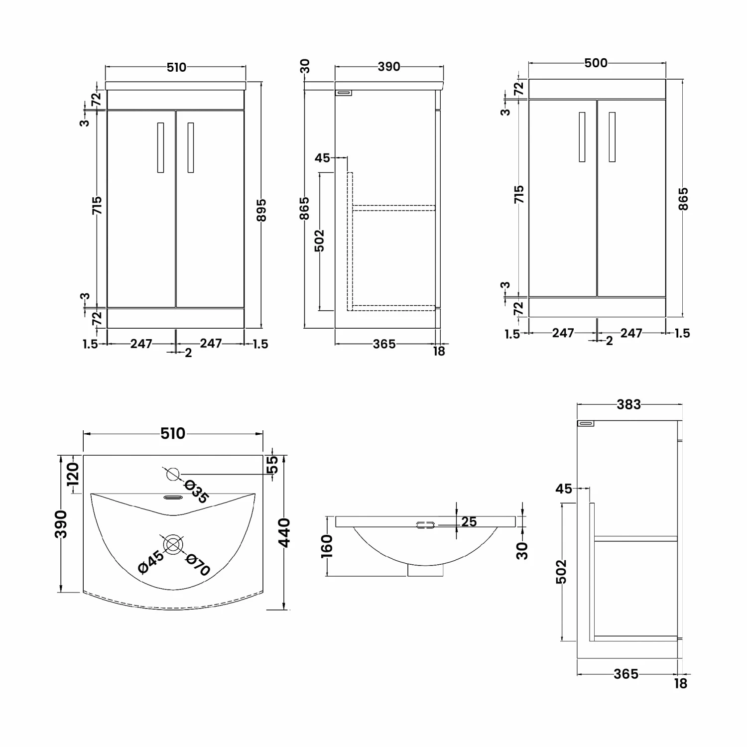 - Please refer the secondary image for the Curved basin included with this Vanity Unit