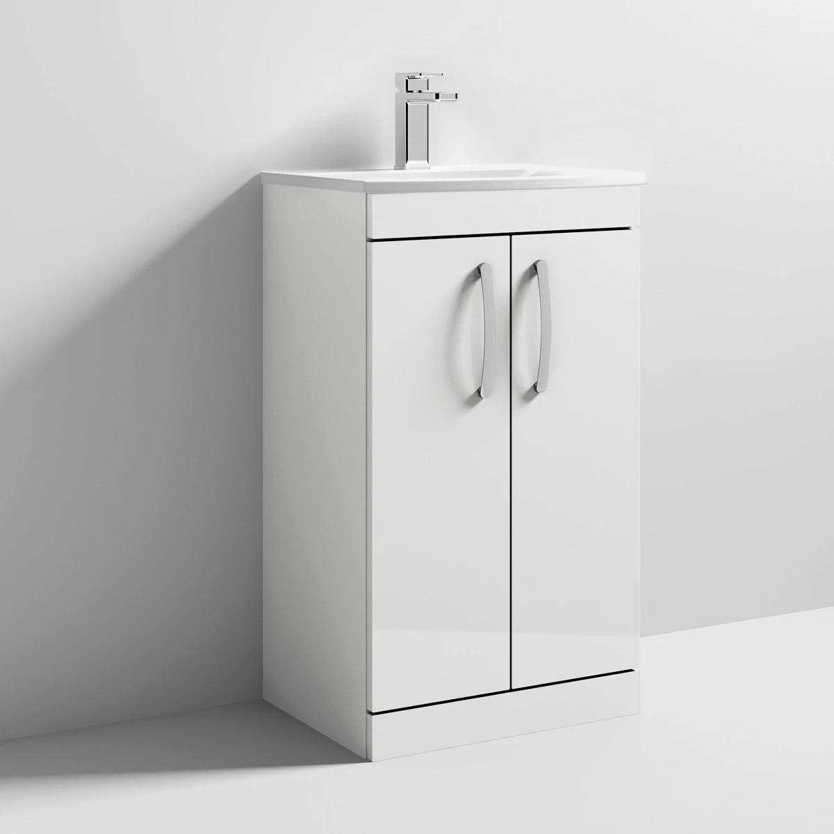 - This sleek gloss white finish compliments any modern bathroom to create a designer look