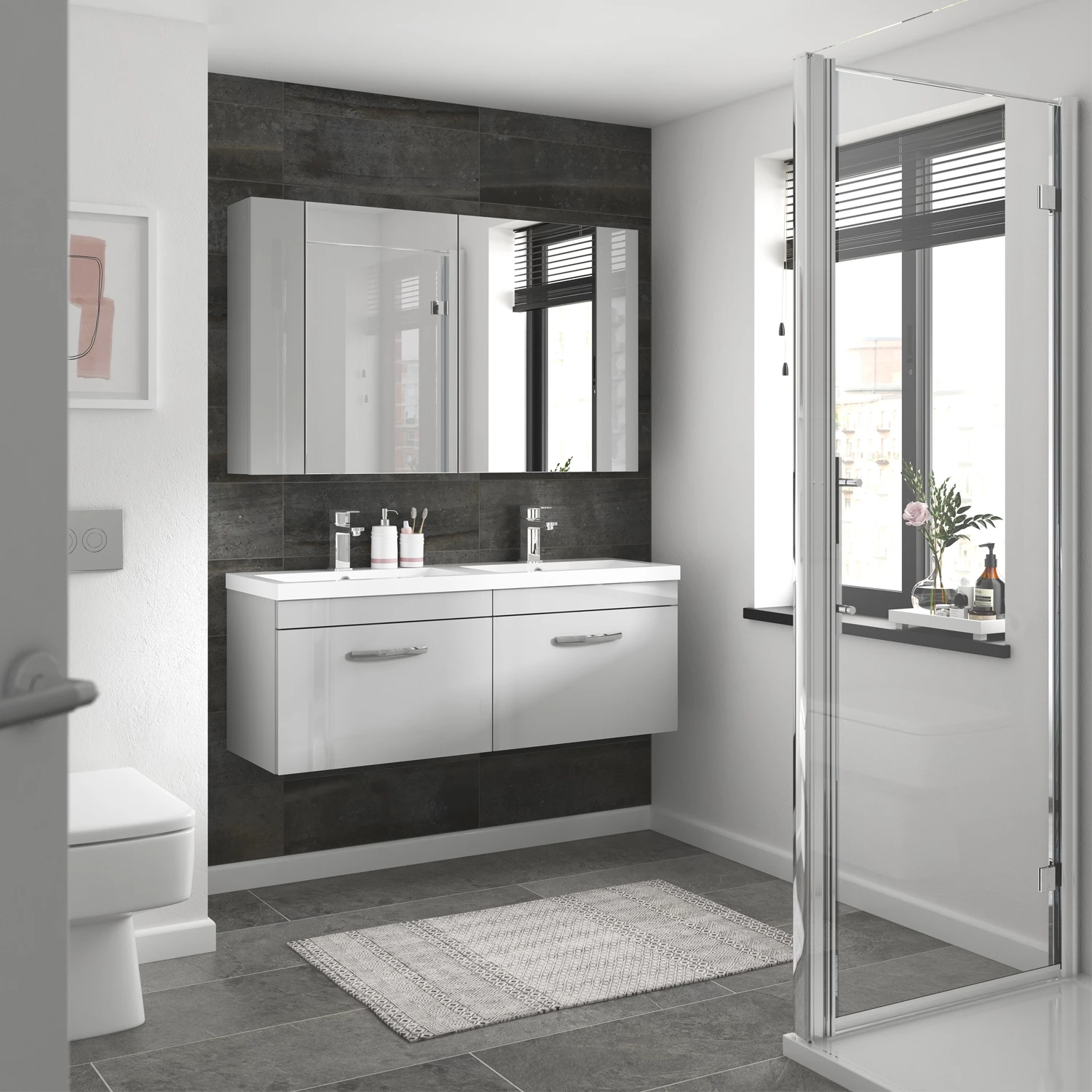 - The Gloss Grey Mist finish allows you to co-ordinate with a range of ceramics and additional storage units
