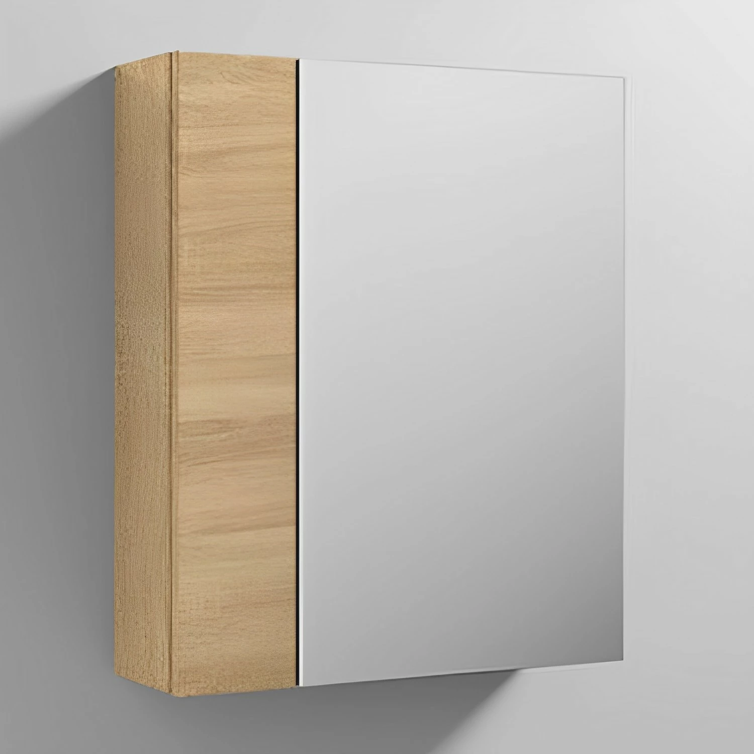 The Nuie Athena Mirrored Cabinet (75/25) 600mm Wide – Natural Oak offers strong build quality and is a great addition to any bathroom. For added safety, the mirror has been film-backed to prevent any potential splintering and the doors have been fitted with soft-close hinges to minimise excess noise and create a luxurious and smooth feel. Within the cabinet, one shelve provide sufficient storage for a family supply of toiletries and, with the wall intended for installation on the wall, one can gain extra security knowing that certain products can be kept high out of the reach of small children. Providing 5 Year Guarantee against faulty workmanship or materials (excluding serviceable parts)