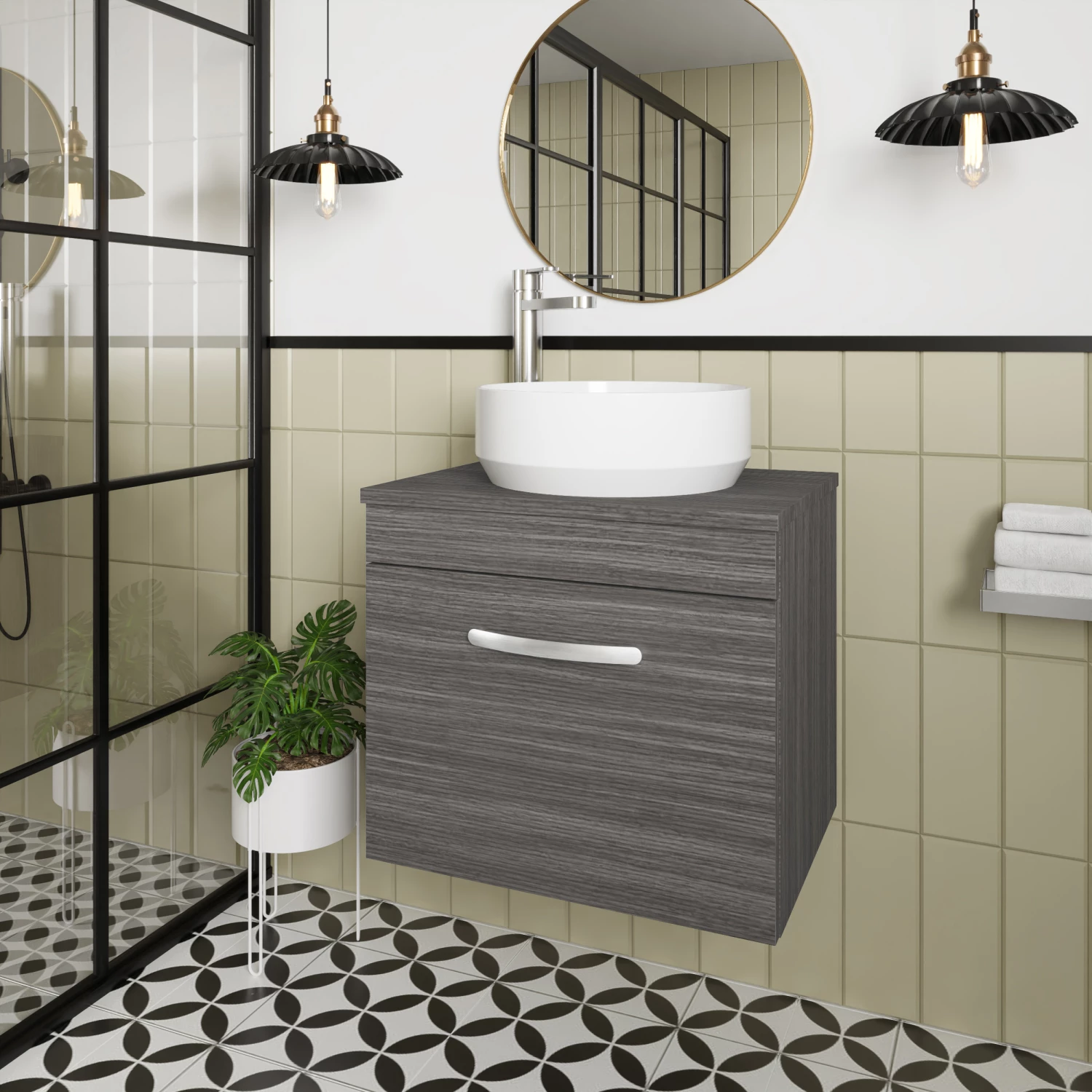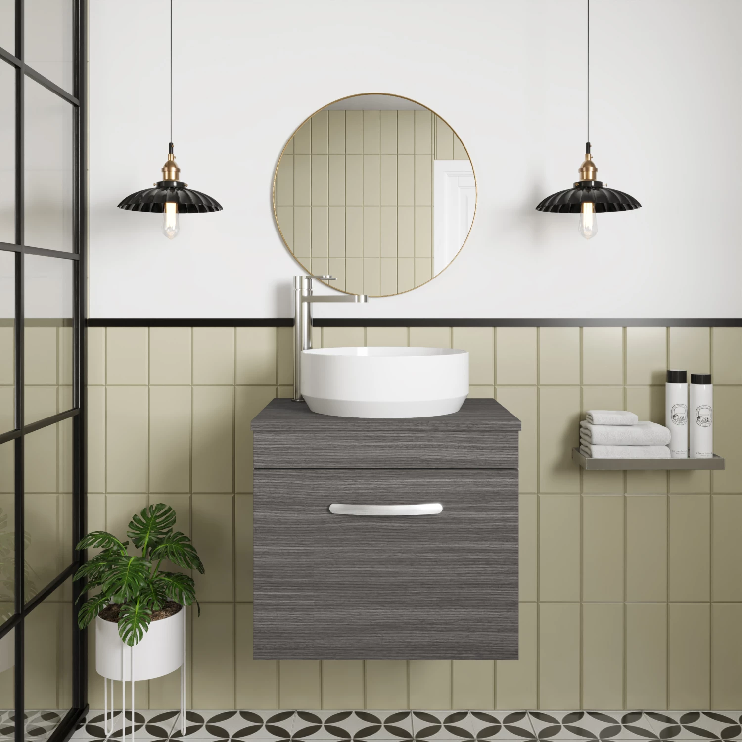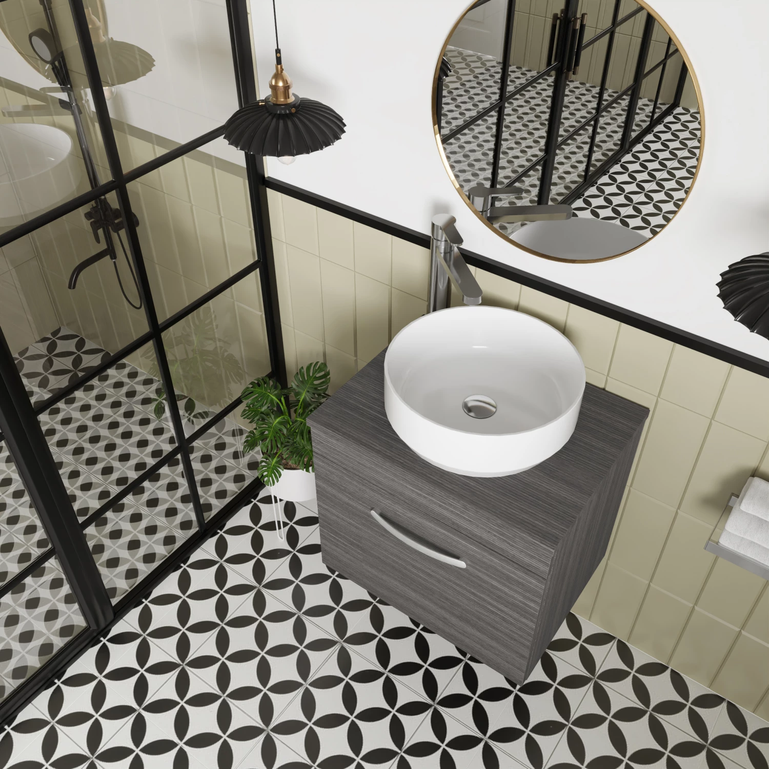 - Unique gloss grey finish compliments any modern bathroom to create a designer look