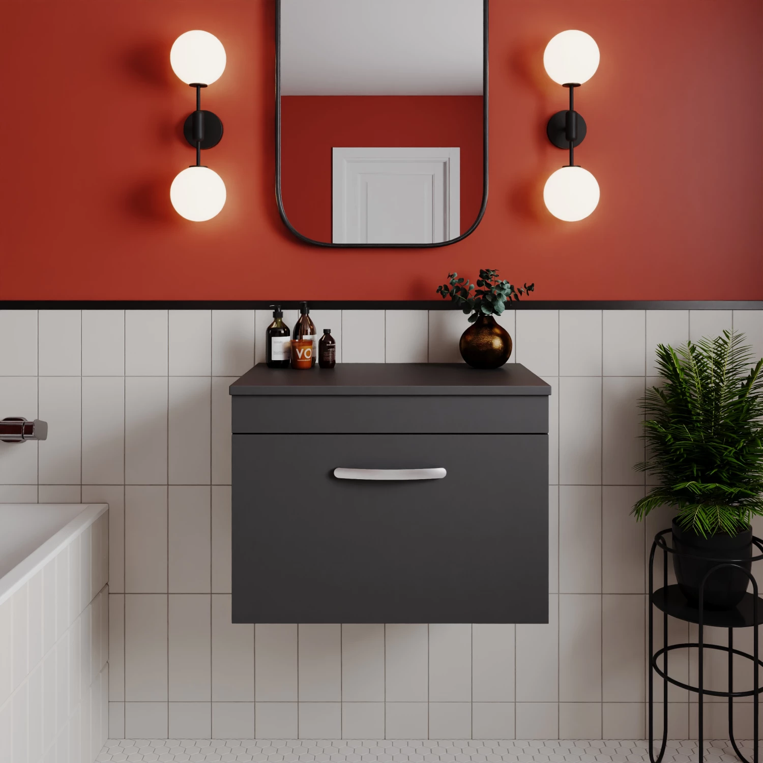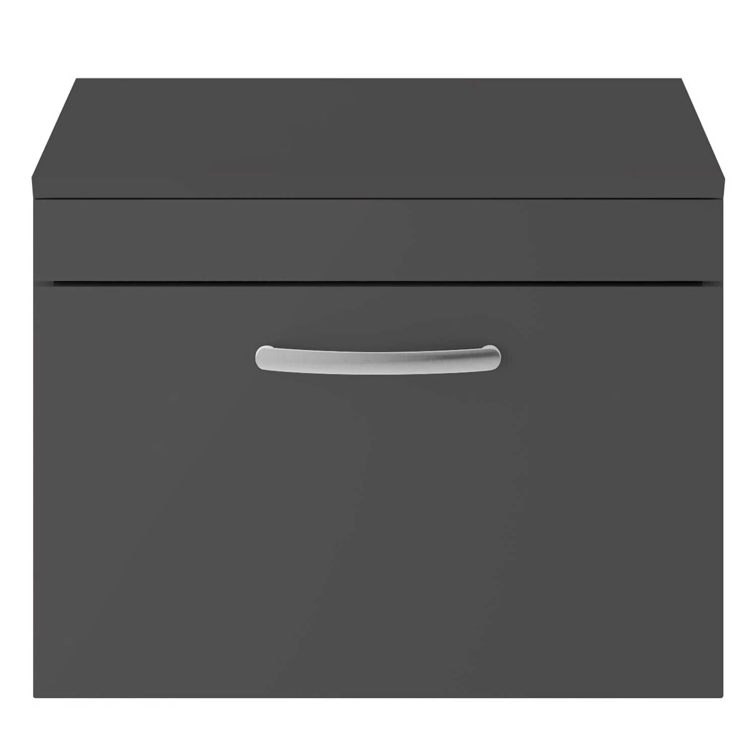 - Unique gloss grey finish compliments any modern bathroom to create a designer look