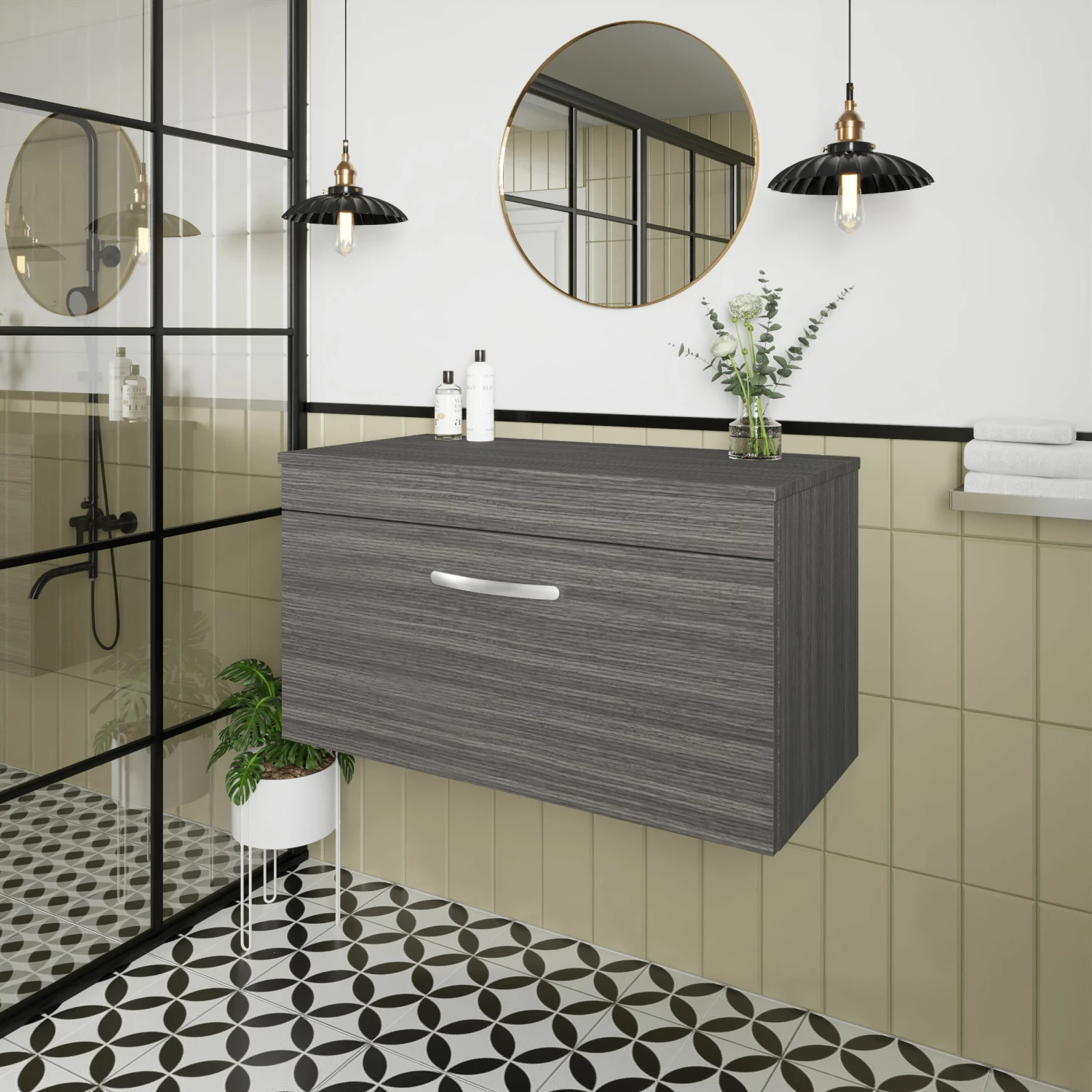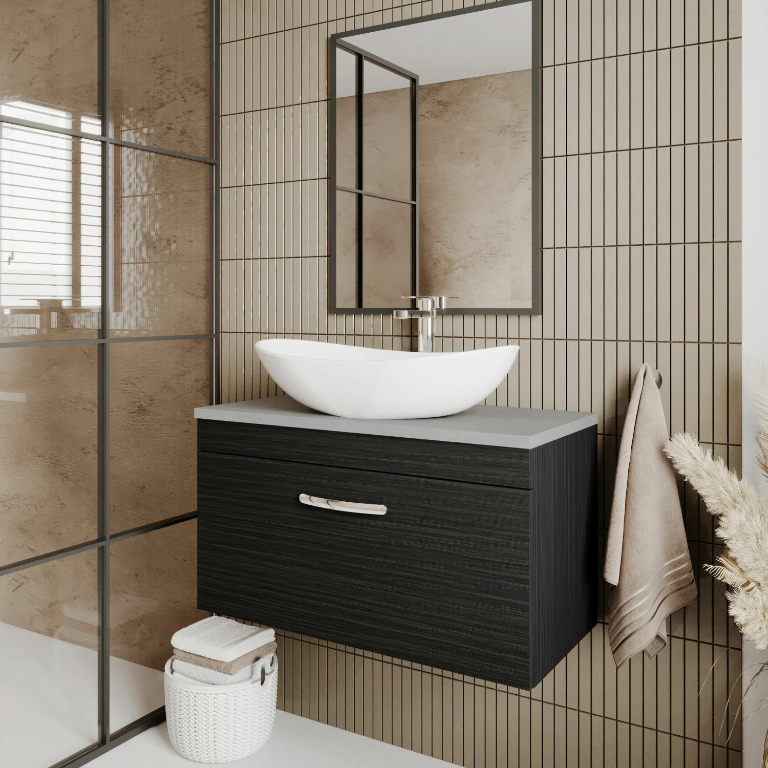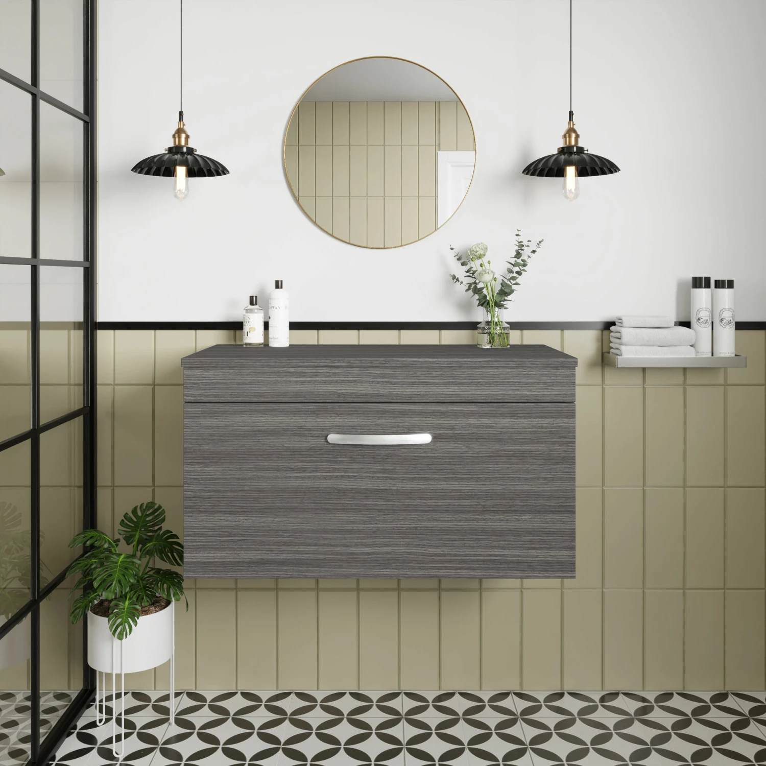 - This eye catching anthracite woodgrain finish compliments any modern bathroom to create a designer look