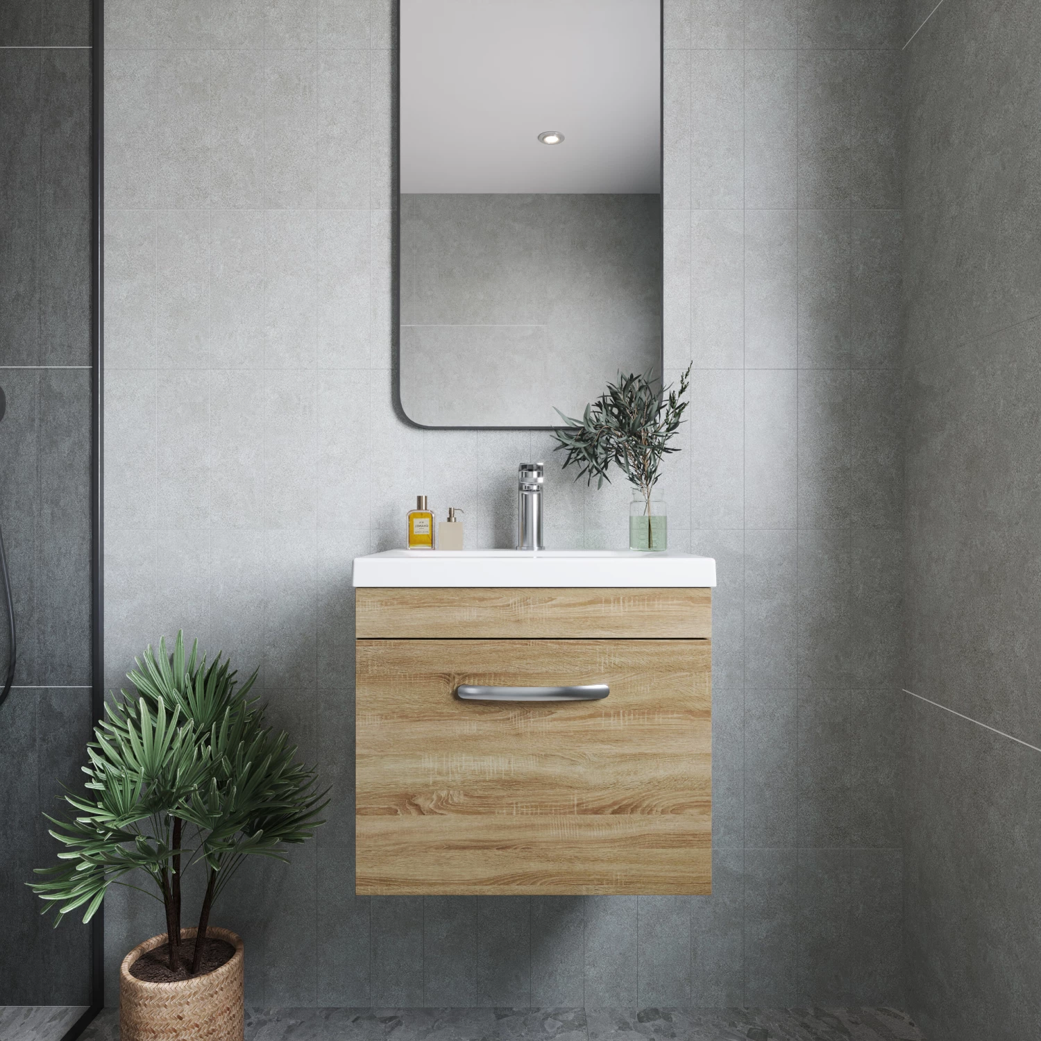 - This stunning natural oak finish compliments any modern bathroom to create a designer look