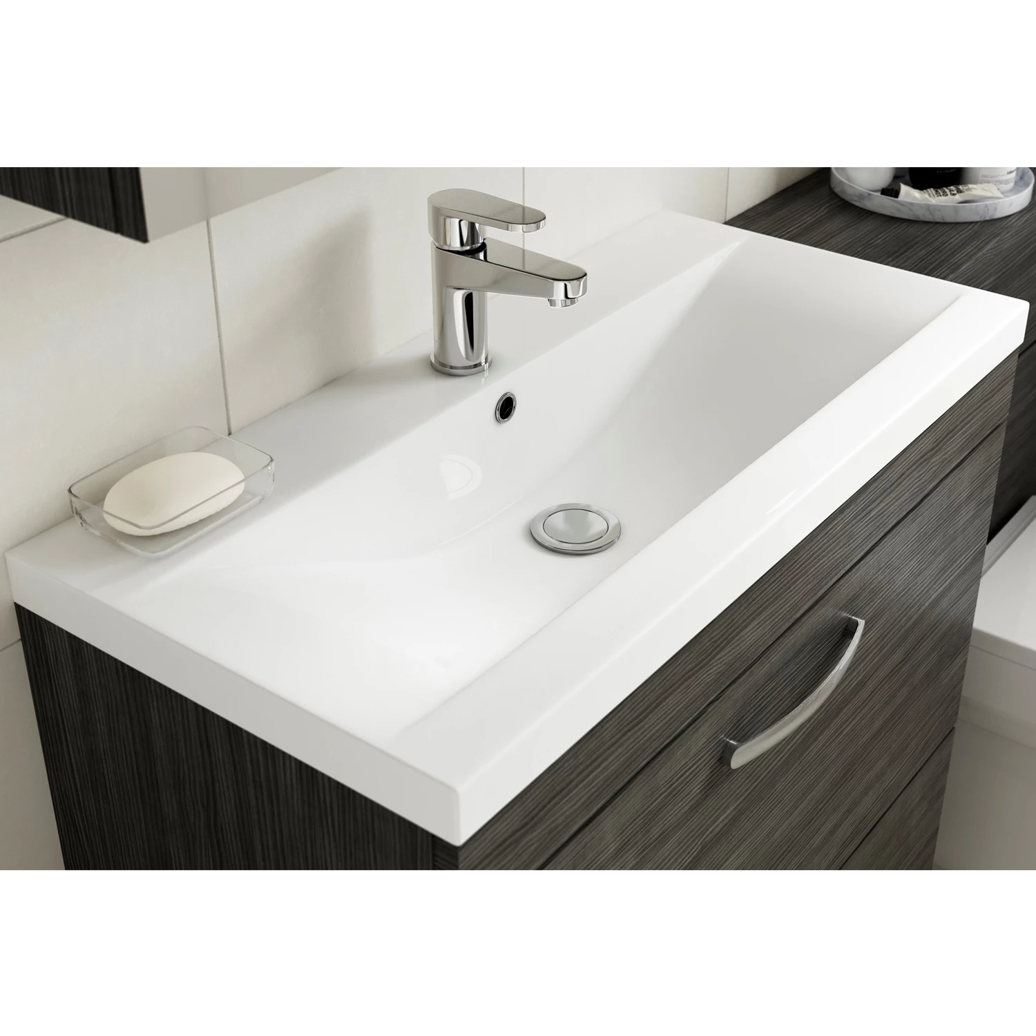 - This wall hung unit creates more space in your bathroom giving the illusion of a bigger bathroom