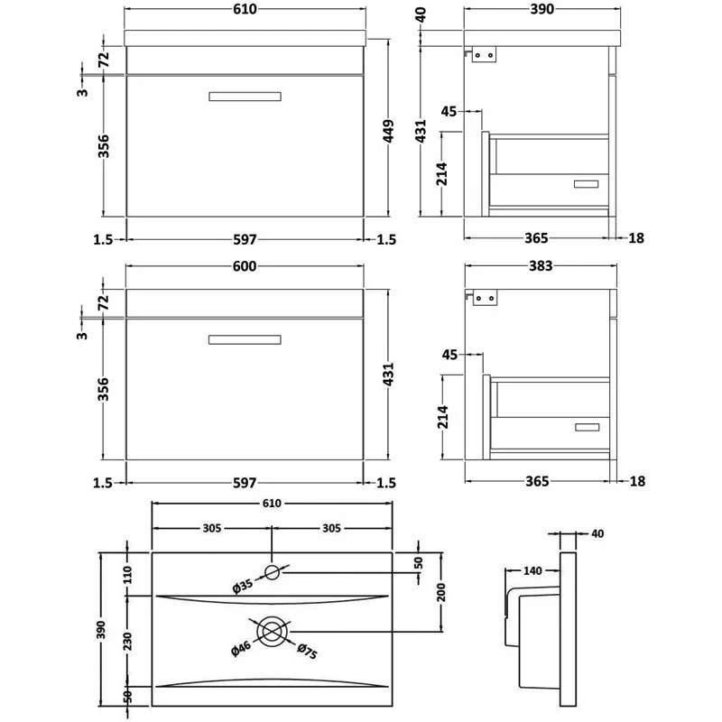 - This wall hung unit creates more space in your bathroom giving the illusion of a bigger bathroom