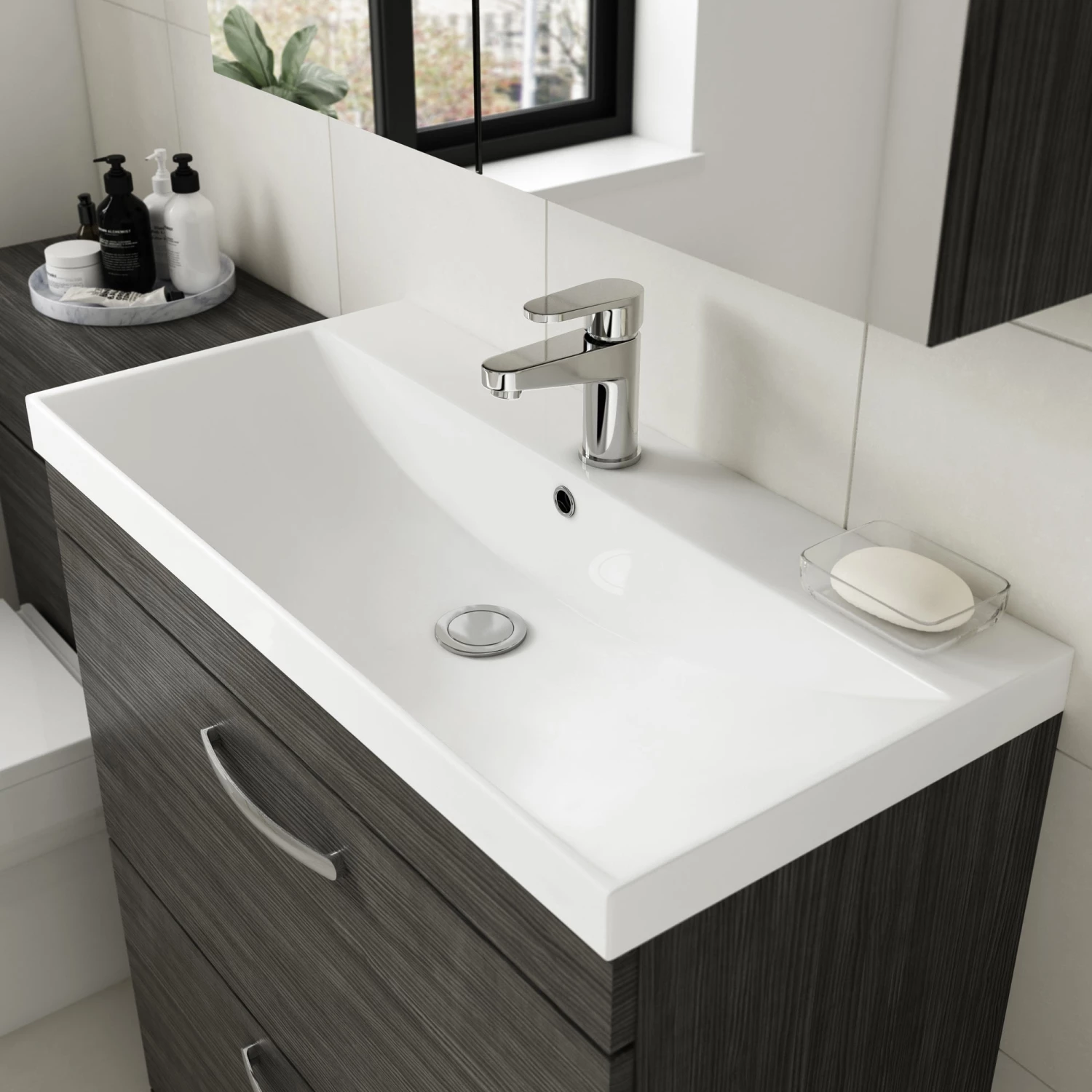 - Wall hung unit creates more space giving the illusion of a bigger bathroom