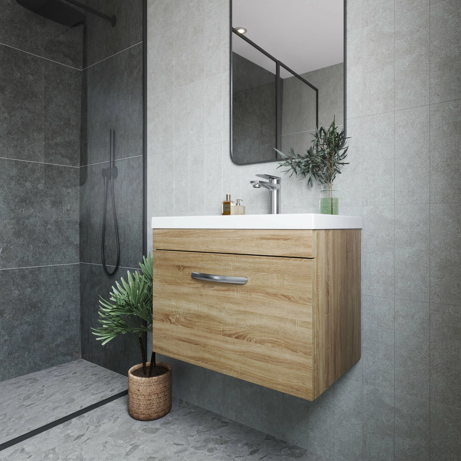 - This stunning natural oak finish compliments any modern bathroom to create a designer look