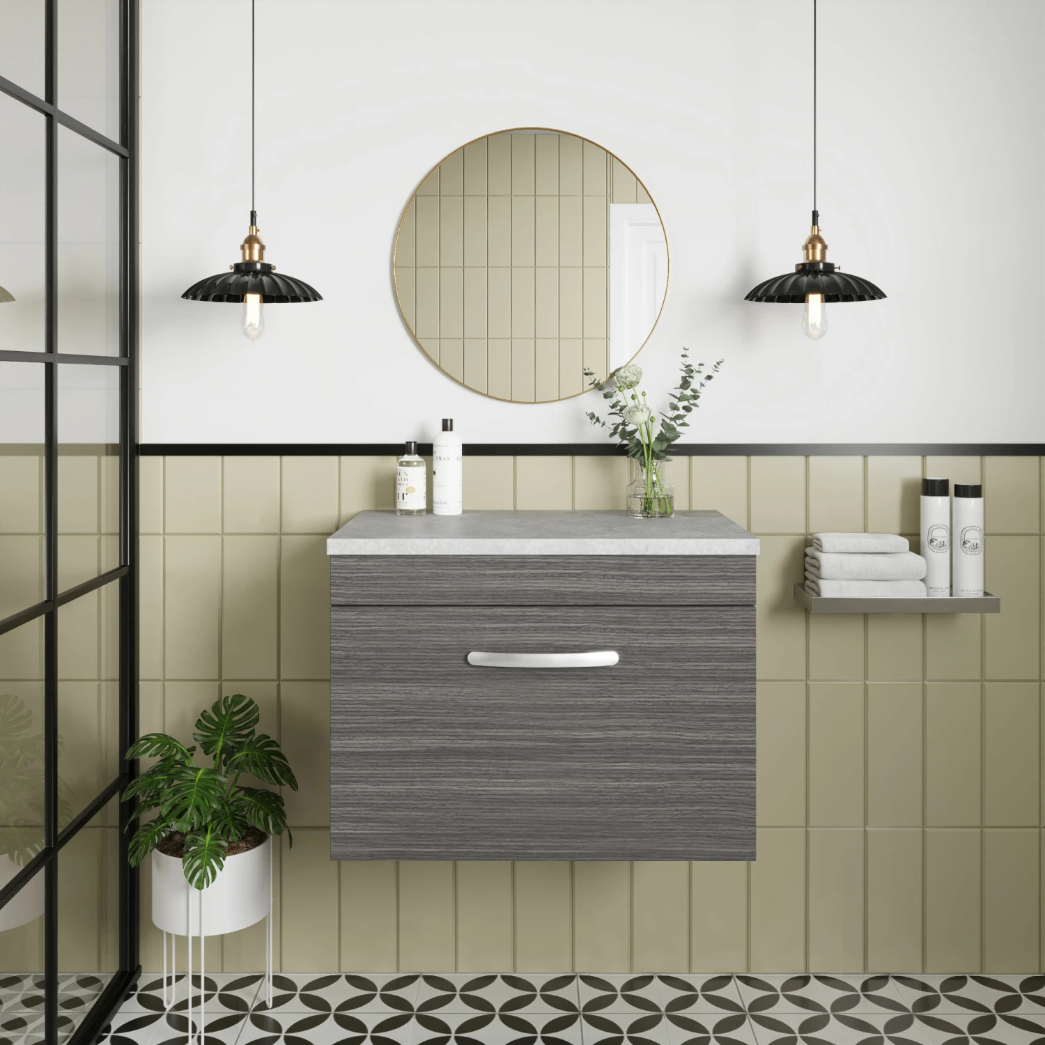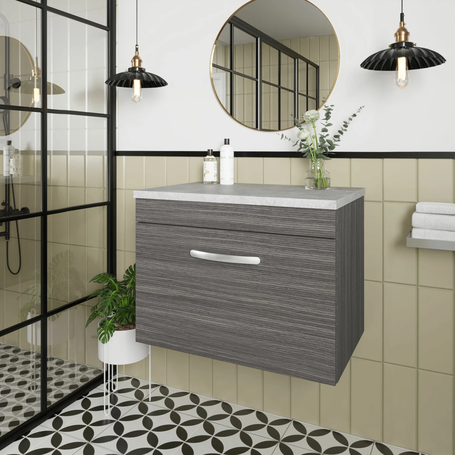 - This eye catching Anthracite Woodgrain finish compliments any modern bathroom to create a designer look