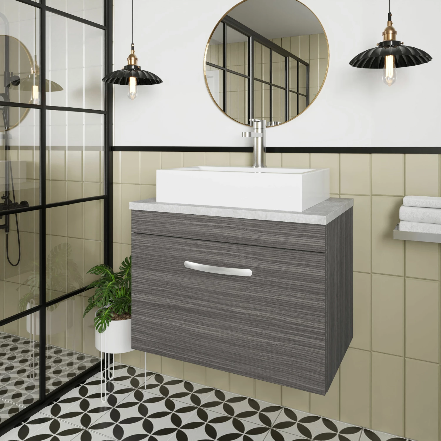 - Supplied with grey laminate worktop for use with vessel basin (See the You May Need)