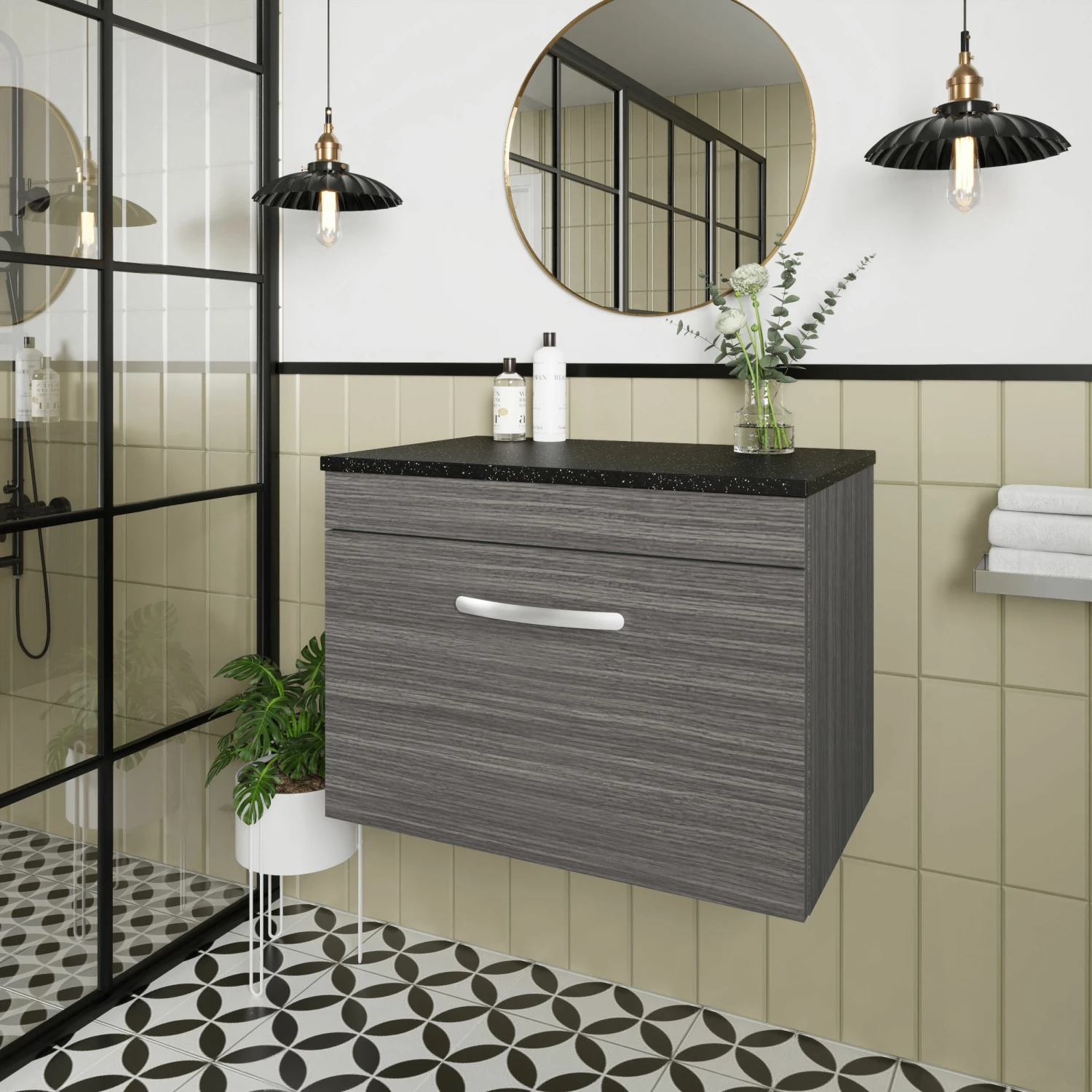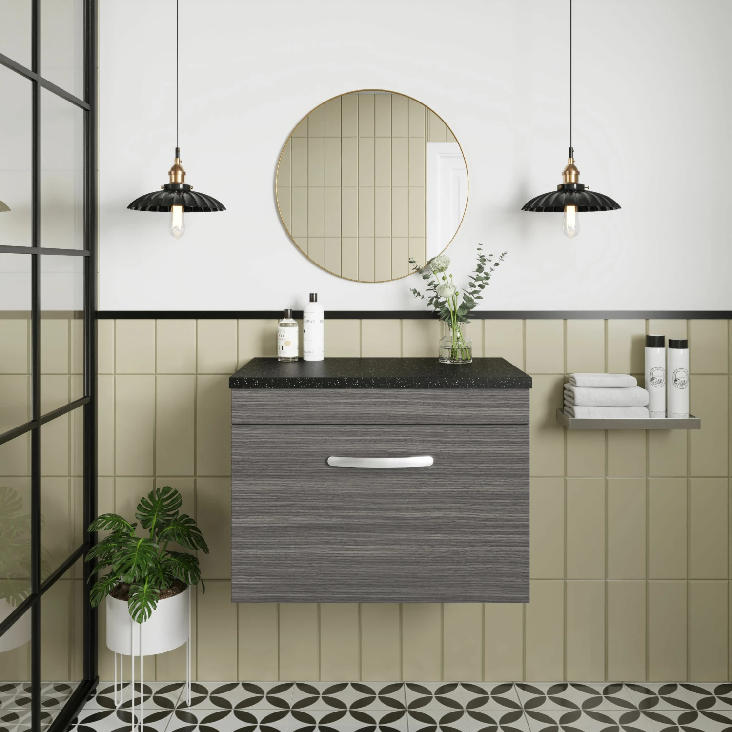 - This eye catching Anthracite Woodgrain finish compliments any modern bathroom to create a designer look