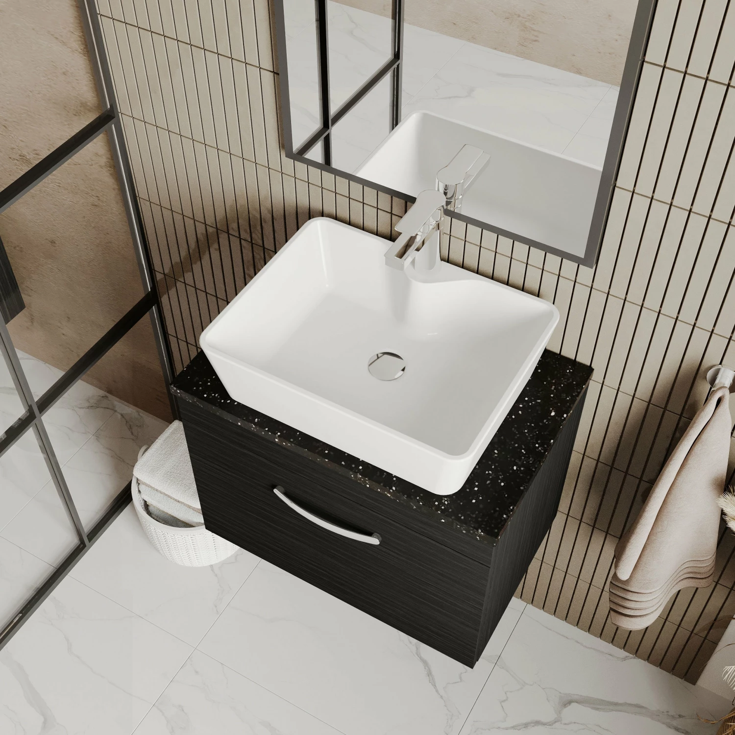 - Supplied with sparkling black laminate worktop for use with vessel basin (See the You May Need)