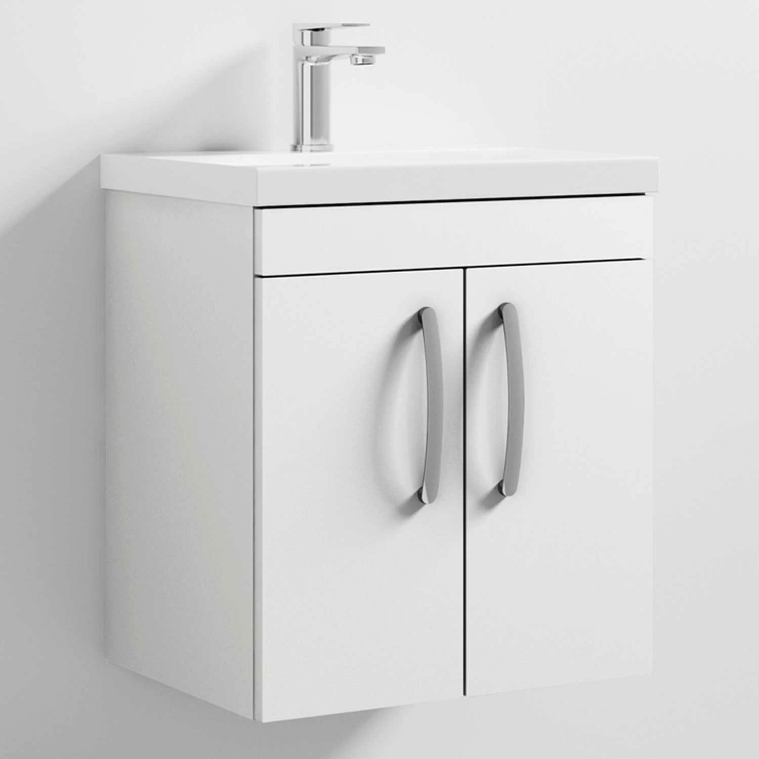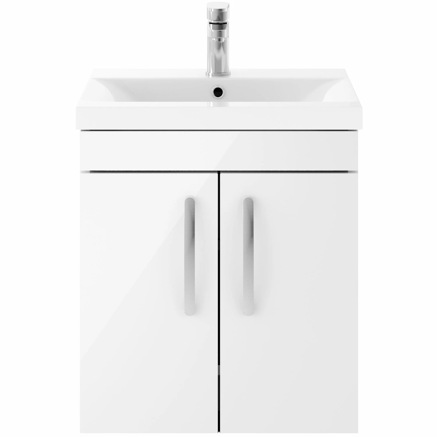 - Unique gloss white finish compliments any modern bathroom to create a designer look