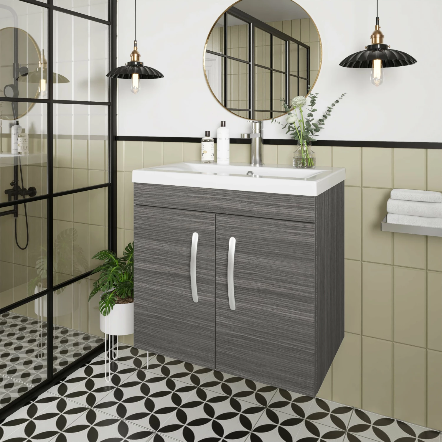 - Unique anthracite woodgrain finish compliments any modern bathroom to create a designer look