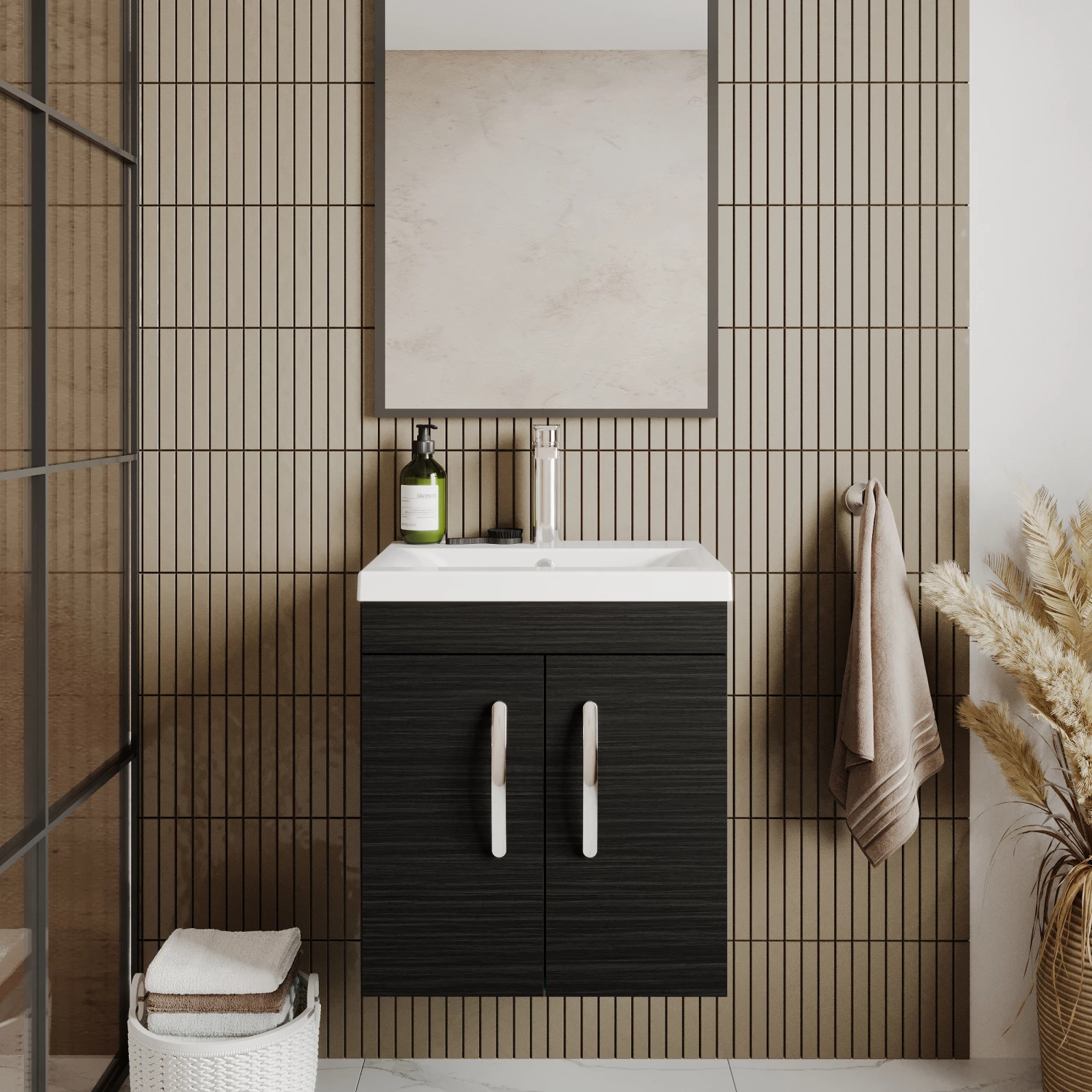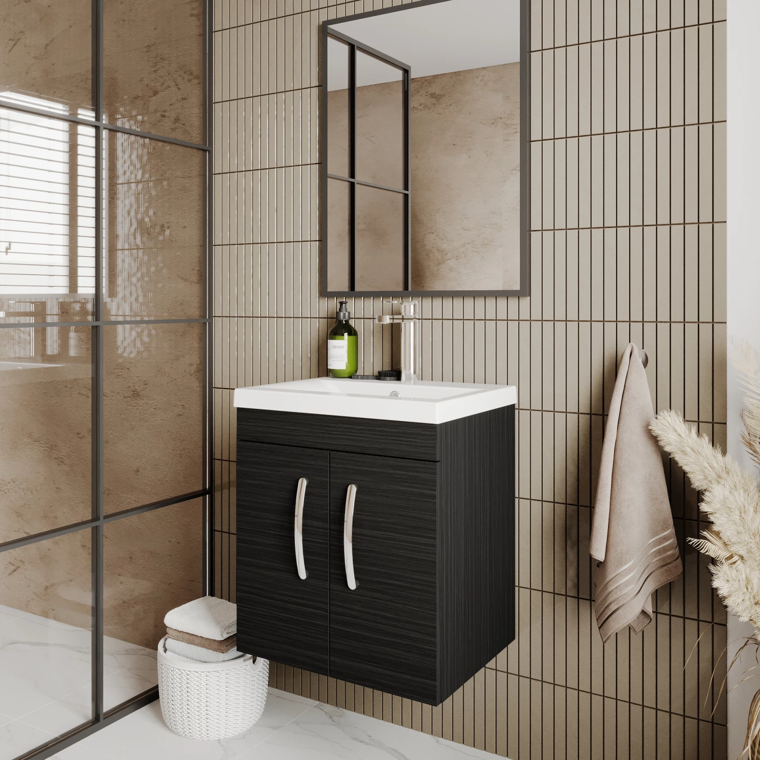 - This stiking Charcoal Black Woodgrain finish adds impact and contast to any modern bathroom and creates a designer look