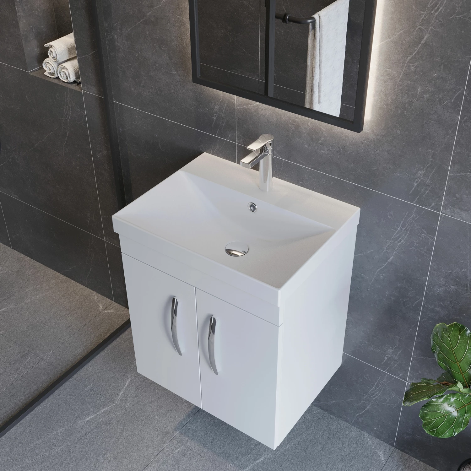 - Wall hung unit creates more space giving the illusion of a bigger bathroom