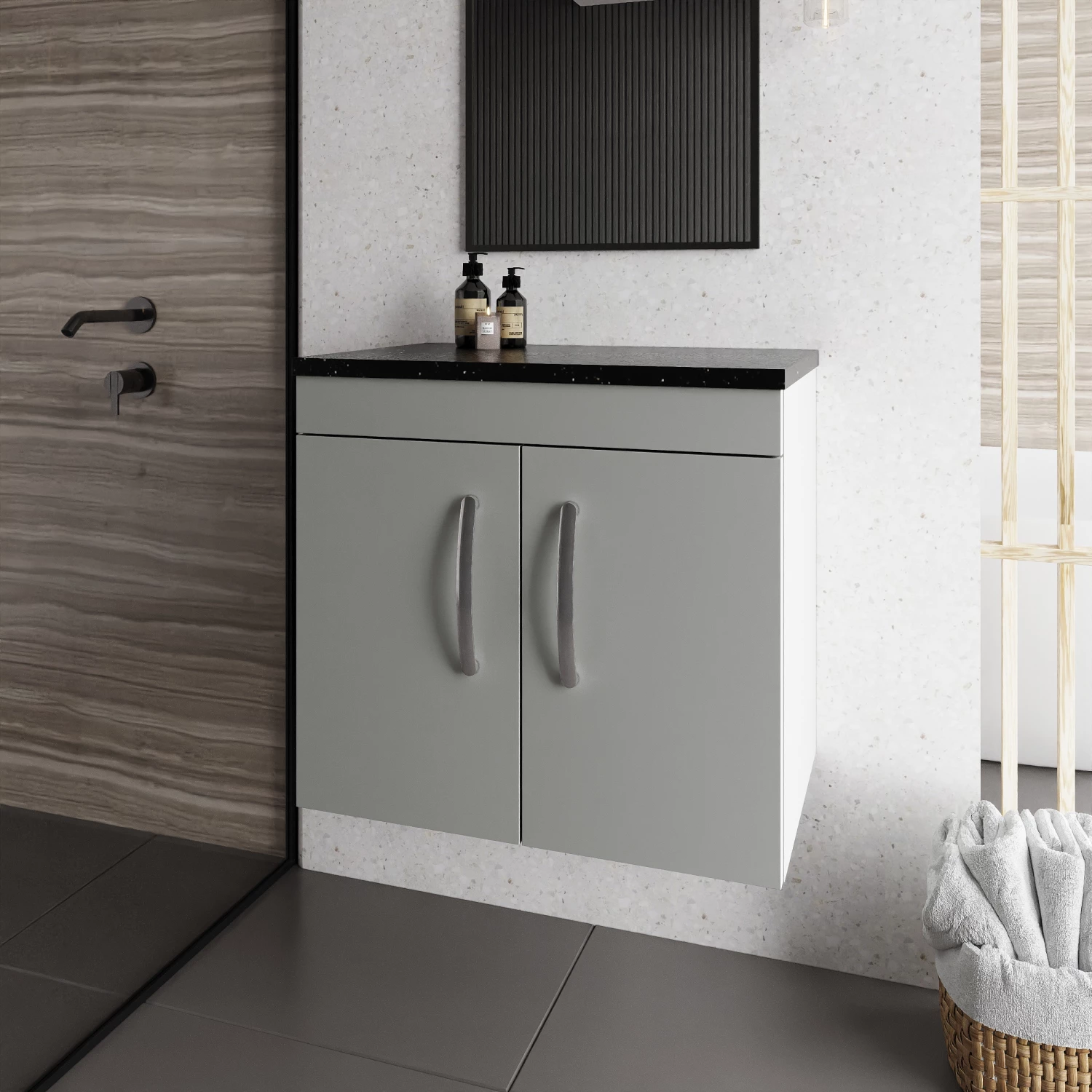 - This sleek gloss grey finish compliments any modern bathroom and creates a designer look