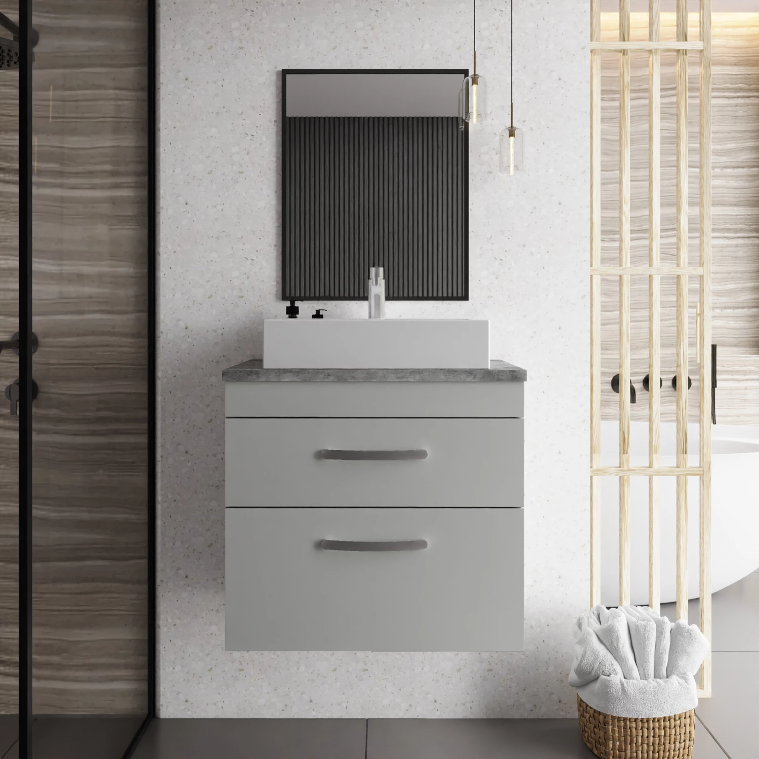 - Supplied with grey laminate worktop for use with vessel basin (See the You May Need)