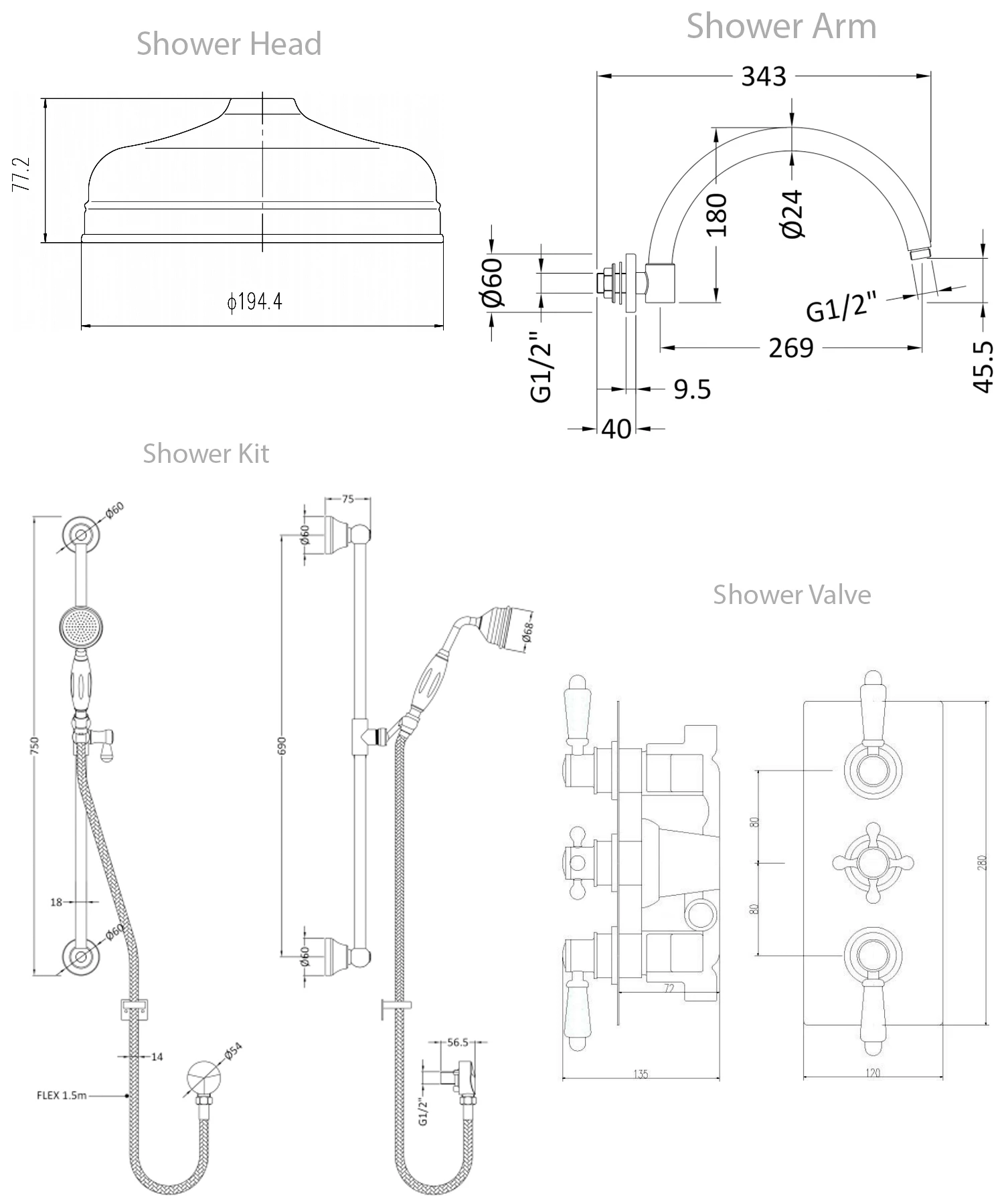 - Comes complete with Shower valve, Shower handset, Shower hose and Outlet elbow