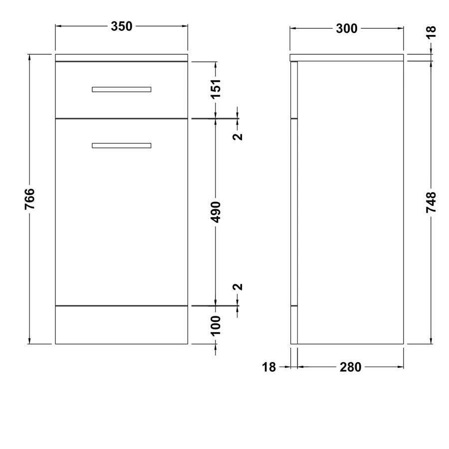- If creating a fitted solution, this unit would suit other 300mm deep furniture
