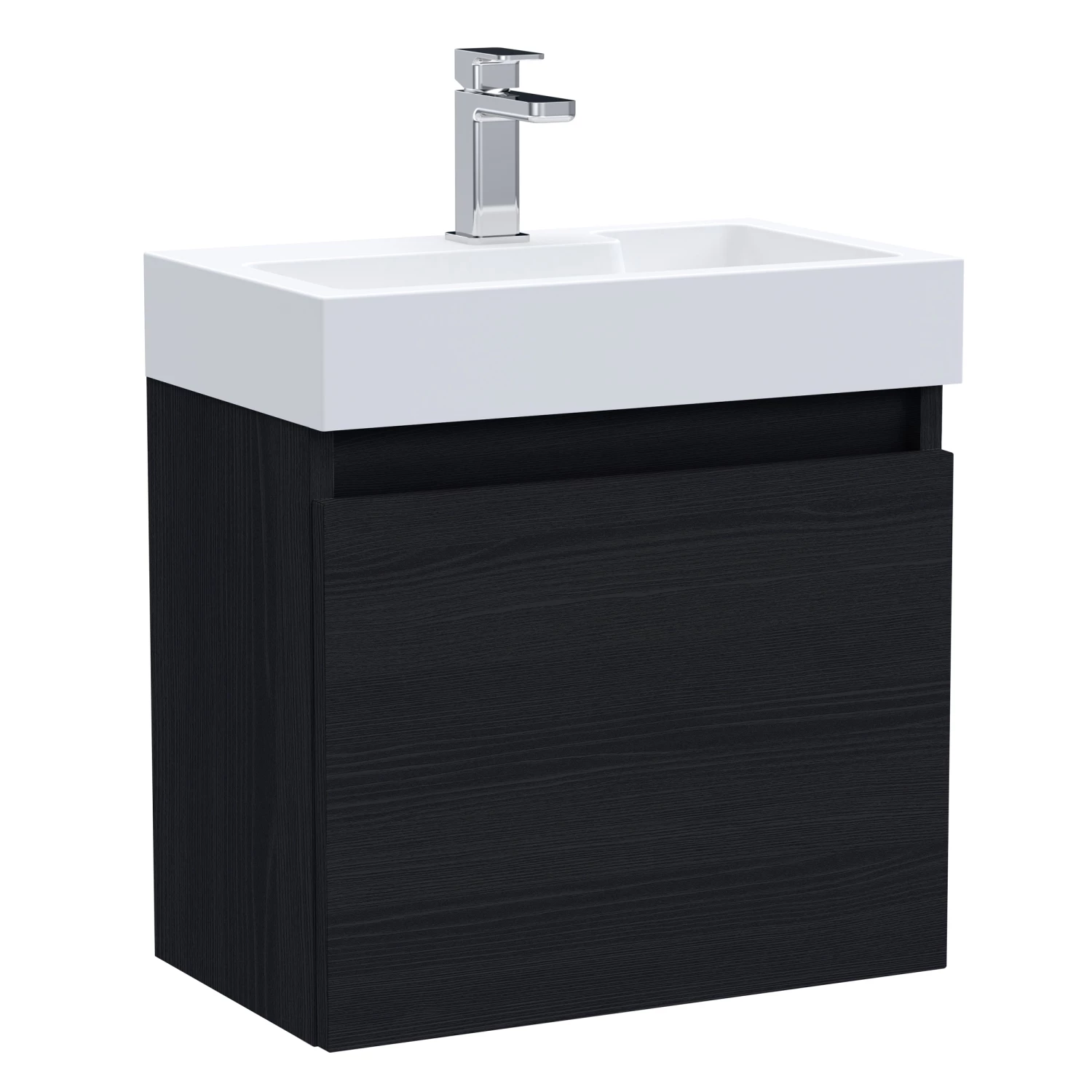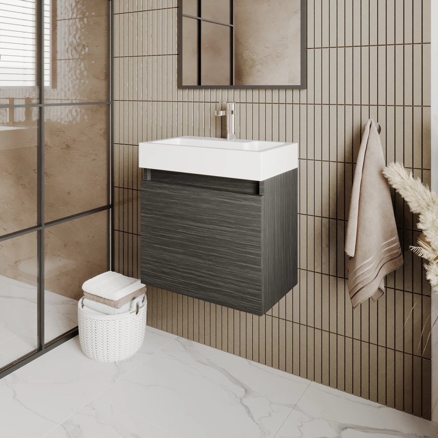 - This striking charcoal black woodgrain finish compliments any modern bathroom to create a designer look