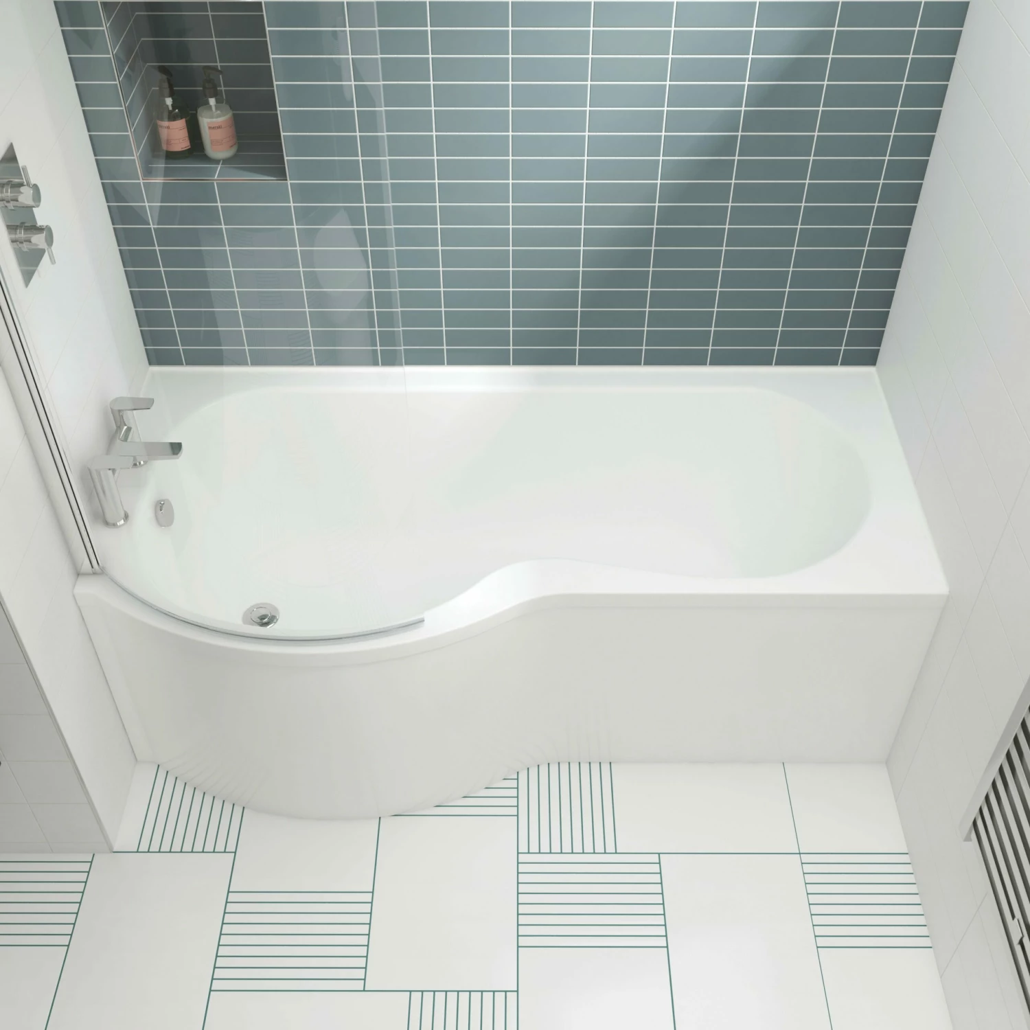 - Left handed bath – the showering end is on the left hand side