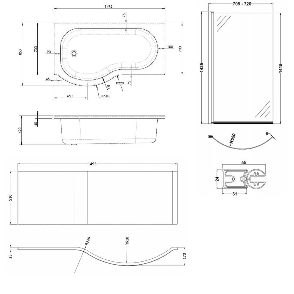 - Comes complete with Shower Bath Screen, Leg Set and Bath Front Panel