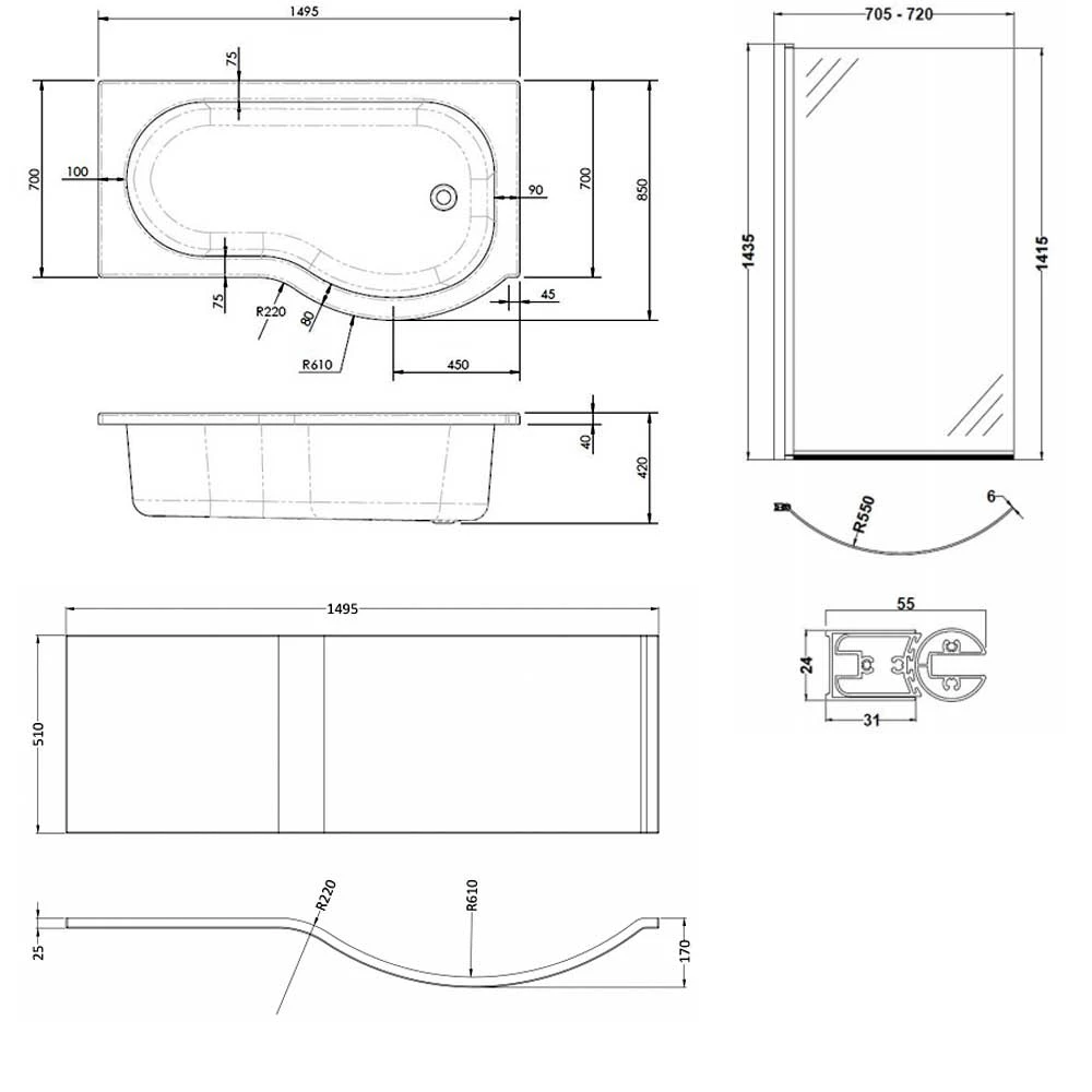 - Comes complete with Shower Bath Screen, Leg Set and Bath Front Panel