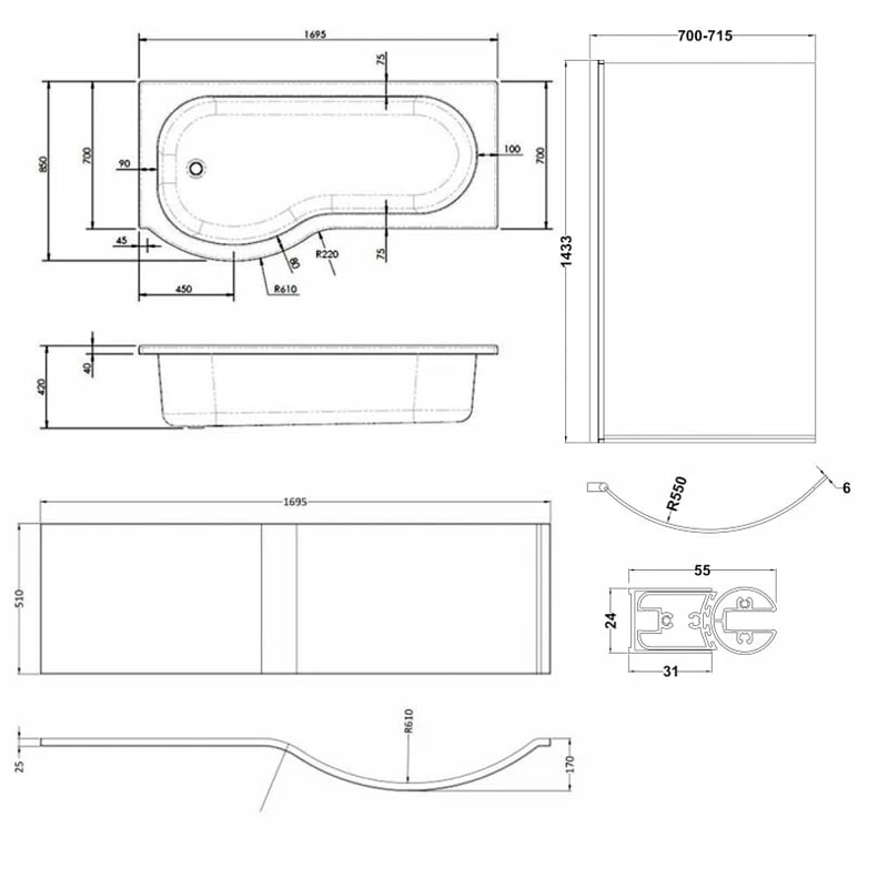 - Comes complete with Shower Bath Screen, Leg Set and Bath Front Panel