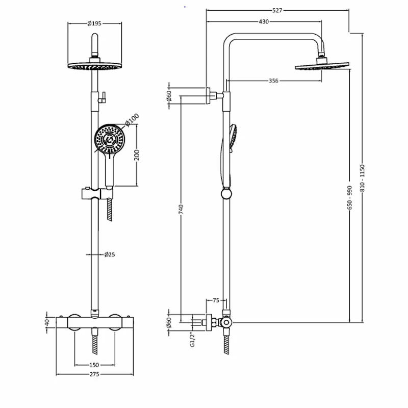 - Comes with Rigid riser kit, fixed shower head and matching handset