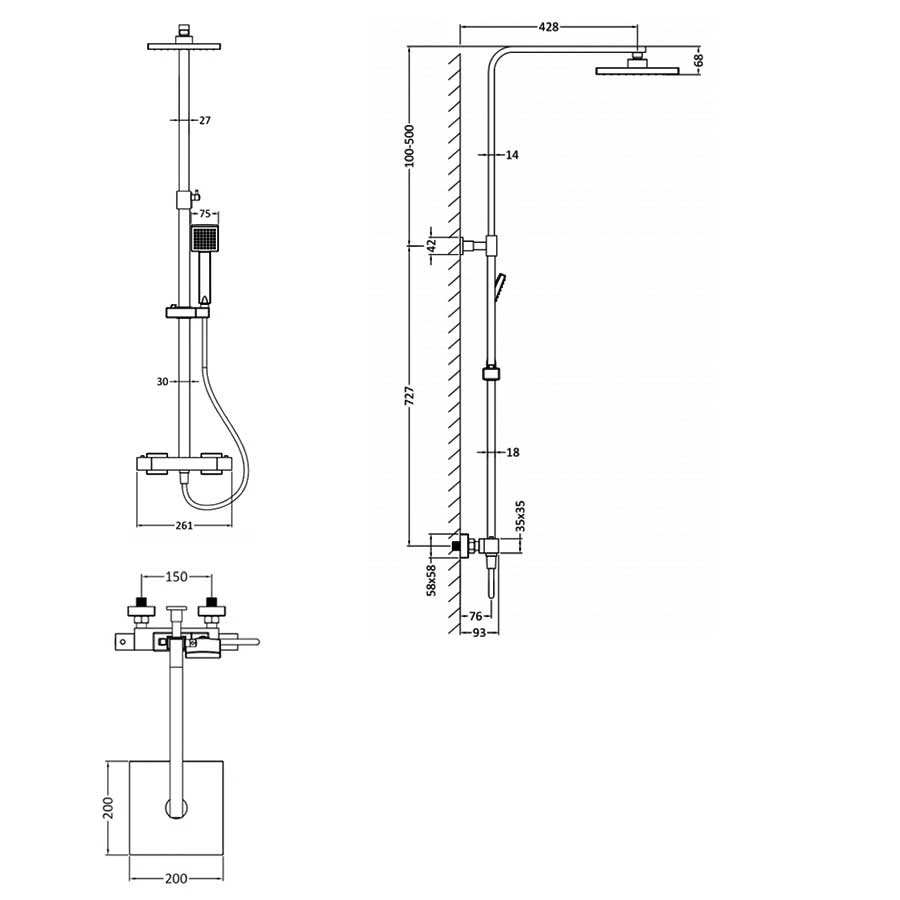- Comes with Rigid riser kit, fixed shower head and matching handset