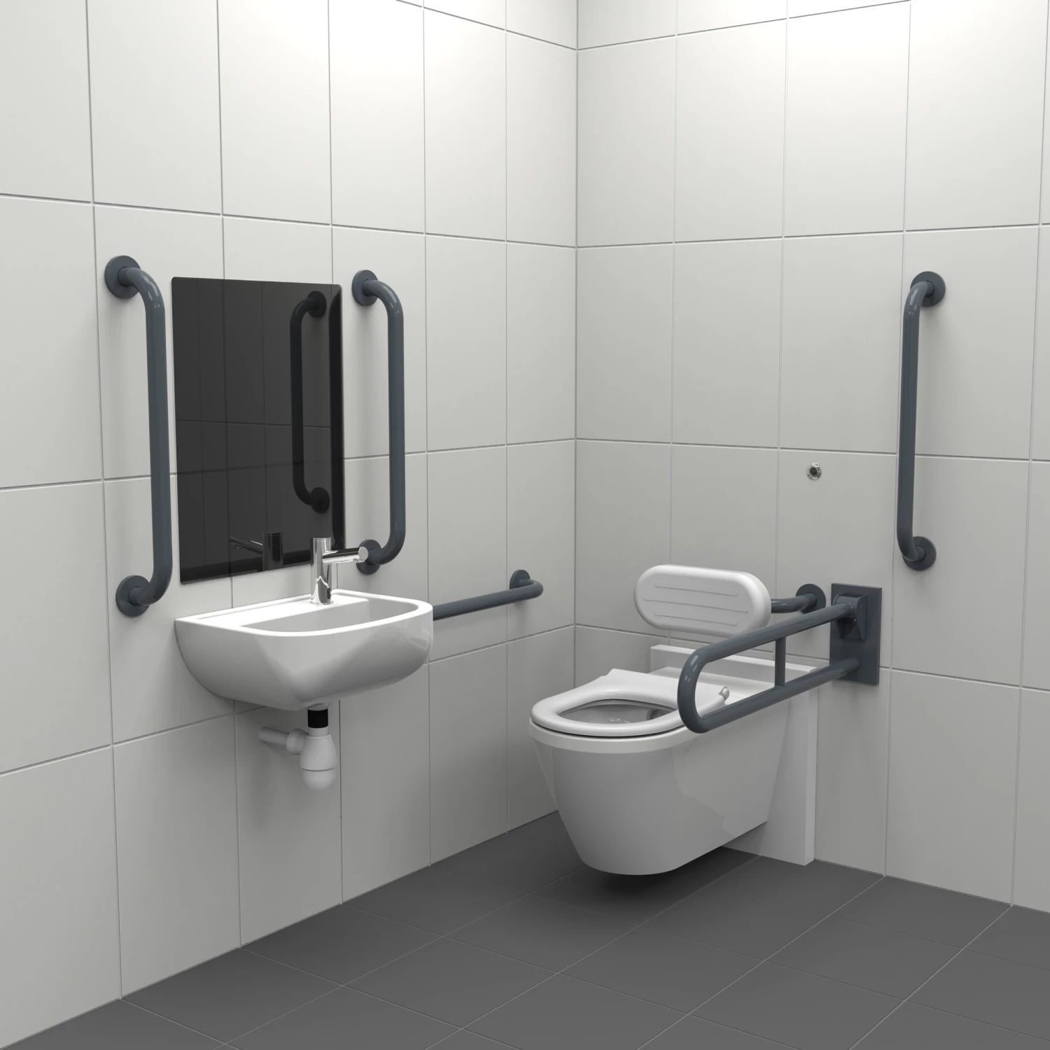 - 1 x 450mm stainless steel grab rail with concealed fixings