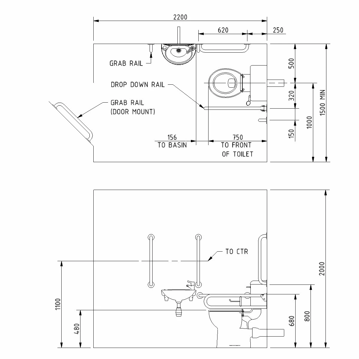- Concealed fixing grab rails