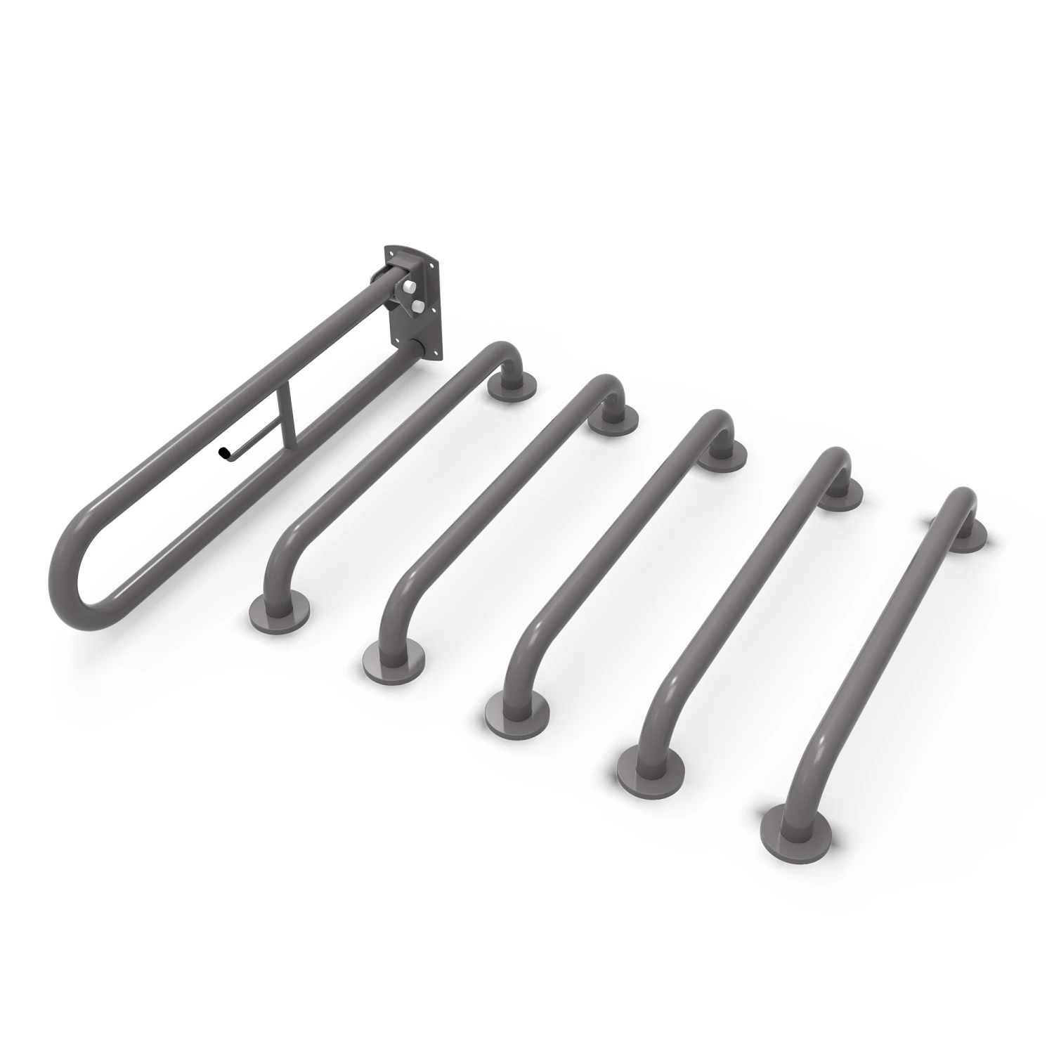 - 5 x 600mm coated steel grab rails with concealed fixings