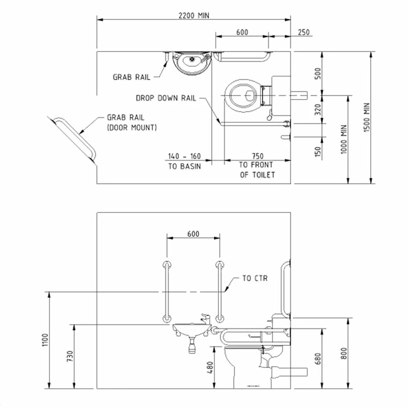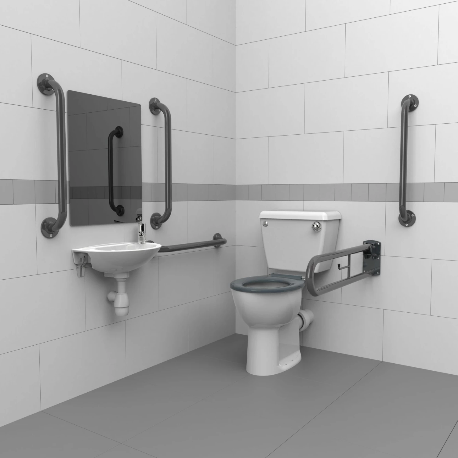 - 5 x 600mm coated steel grab rails with exposed fixings