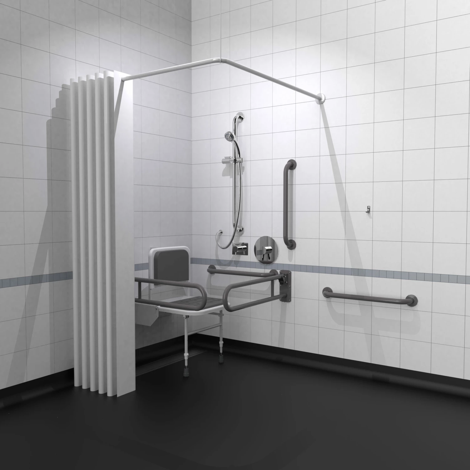 - Extended projection shower seat to allow easier side transfer from wheelchair
