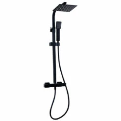 Prestige Nero Thermostatic Square Bar Shower Valve With Shower Kit And Fixed Head – Black