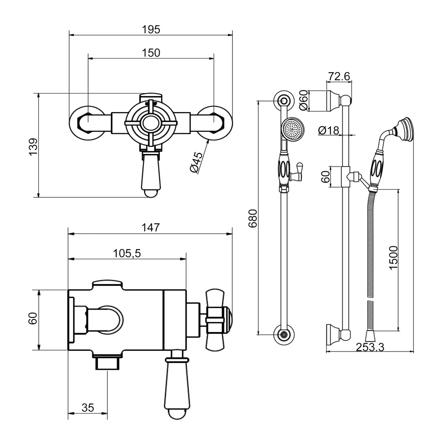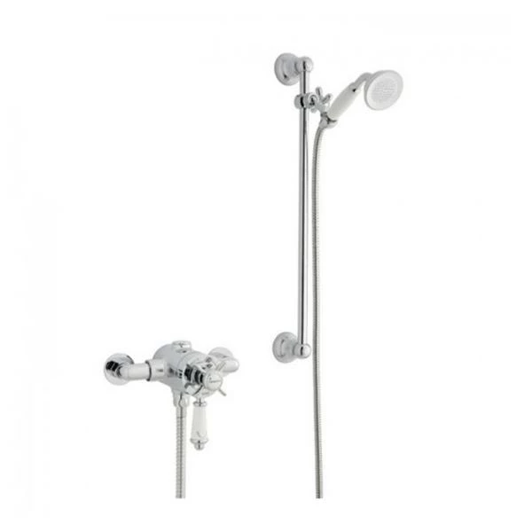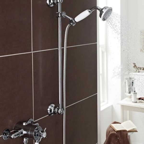 - Supplied complete with Shower valve, Adjustable Slide rail kit and single function round hand shower