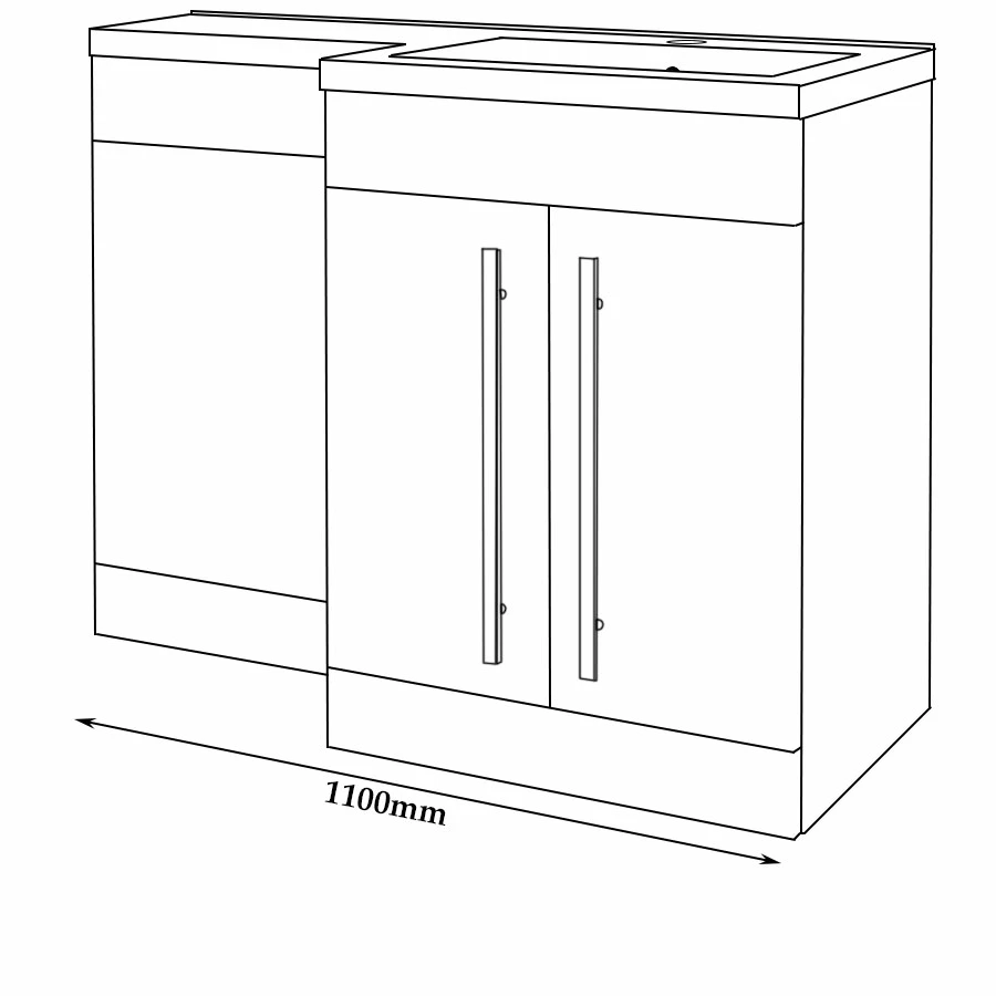 - Includes Vanity Unit with right handed L shape basin, WC Unit and Cistern