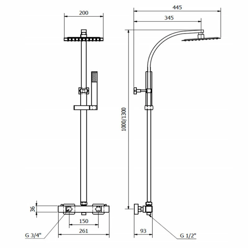 - Comes with bar shower valve, shower handset, fix shower head and rigid riser rail
