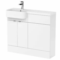 Hudson Reed Fusion LH Combination Unit With Round Semi Recessed Basin 1000mm Wide – Gloss White