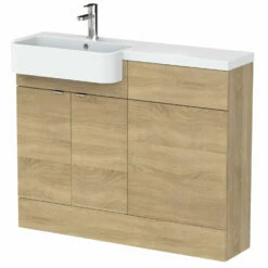 Hudson Reed Fusion LH Combination Unit With Round Semi Recessed Basin 1100mm Wide – Natural Oak