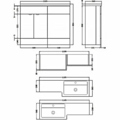 Hudson Reed Fusion LH Combination Unit With L Shape Basin – 1100mm Wide – Gloss Grey